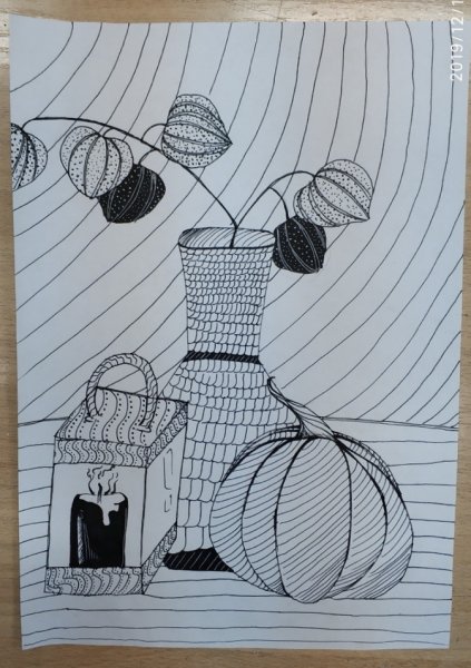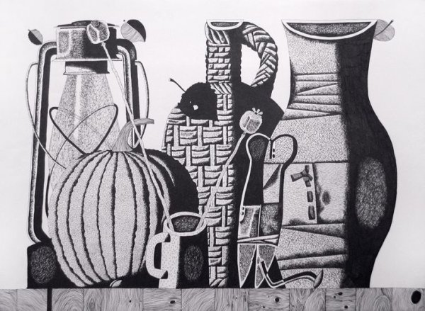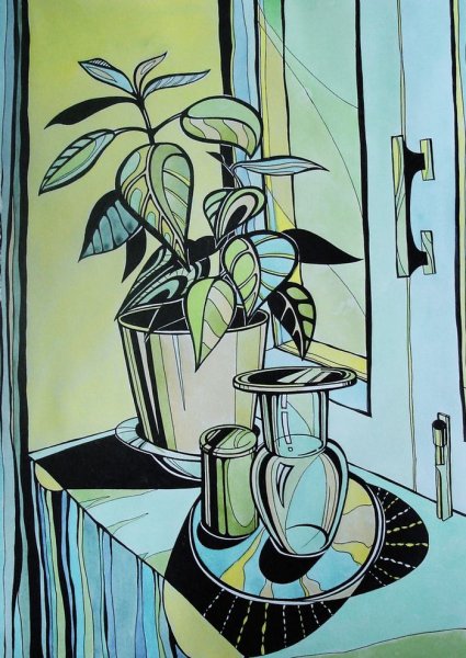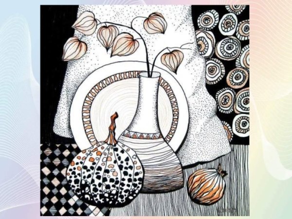 Декоративный натюрморт в графике простой - это искусство, которое воплощает красоту и эстетику в упрощенной форме. В таком натюрморте акцент делается на ярких цветах, четких контурах и простых композициях. Он может включать различные предметы, такие как фрукты, цветы, посуду или другие декоративные элементы. Графический стиль подчеркивает гармонию и баланс объектов на холсте, создавая привлекательное и уникальное зрительное восприятие. Декоративный натюрморт в графике простой приносит радость и удовольствие своим ярким, но лаконичным исполнением, добавляя в интерьер нотку изысканности и элегантности.
