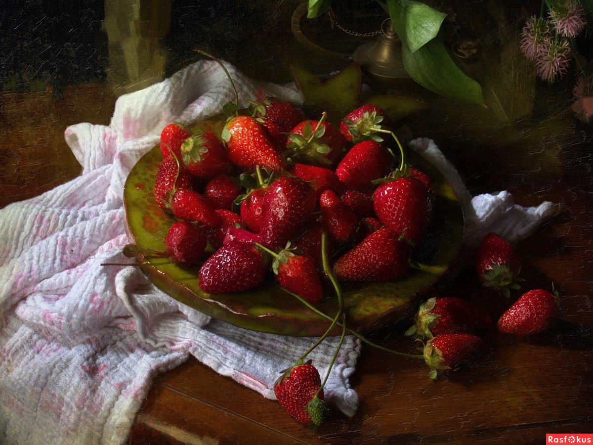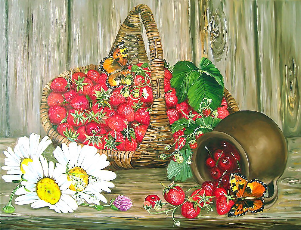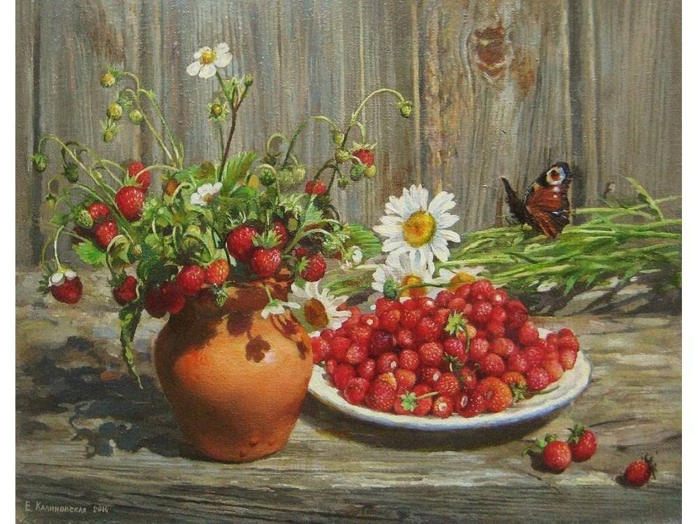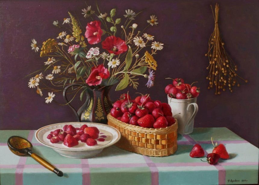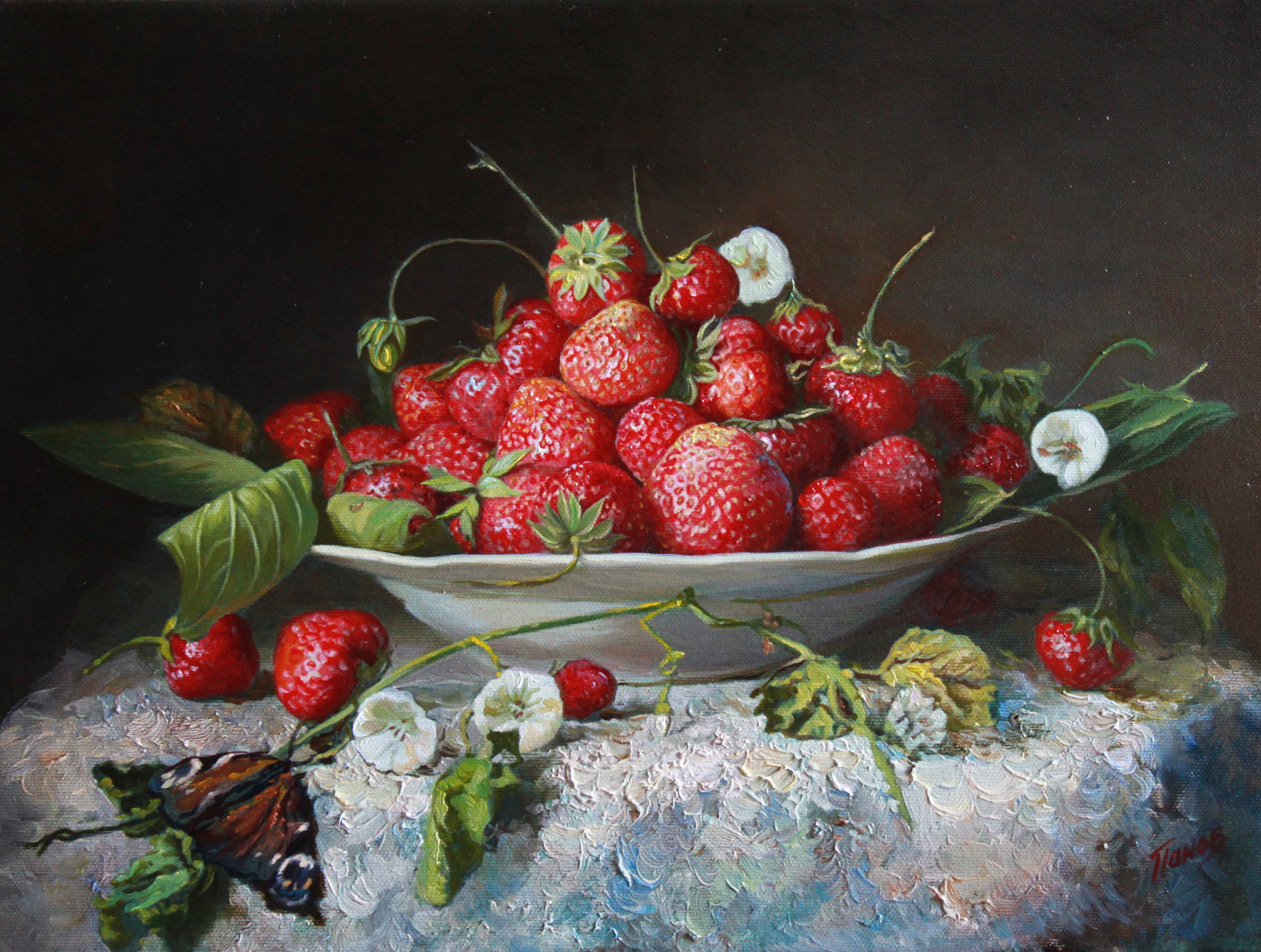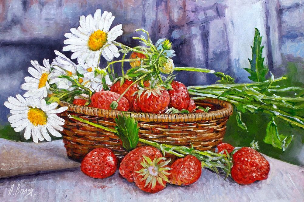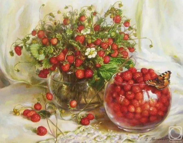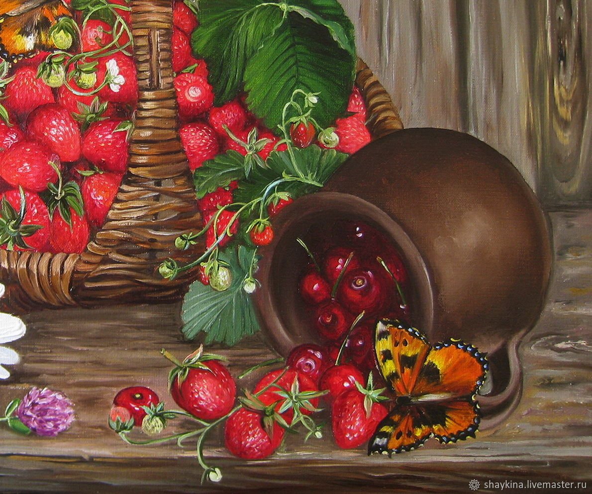 Натюрморт с земляникой - это изображение, которое запечатлевает красоту и свежесть этого сочного ягодного плода. Это композиция, в которую входят свежие, спелые ягоды земляники, расположенные на стильной подставке или в корзинке. Натюрморт создает атмосферу летнего благоухания и натуральности, принося радость и аппетит своим наблюдателям. Каждая деталь, каждая капля росы на ягодах передают всю прелесть и естественность этого плода, делая его предметом восхищения и желания. В таком натюрморте можно увидеть не только красивое повествование о природе и богатстве ее плодов, но и насладиться их вкусом, отраженным на изображении.