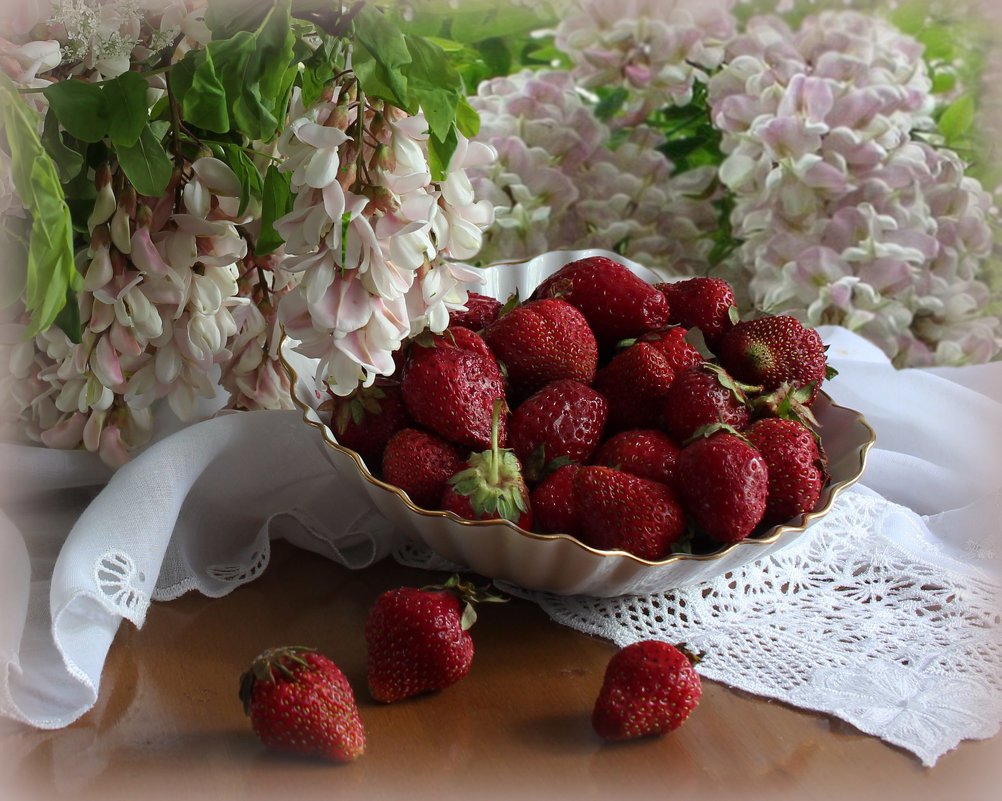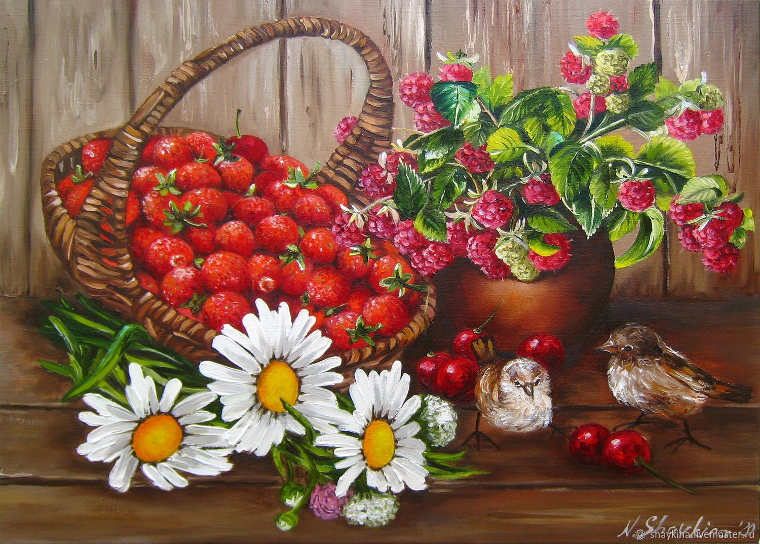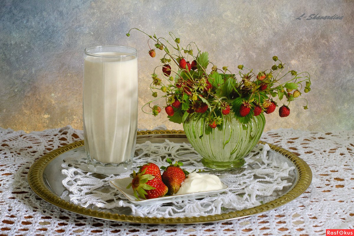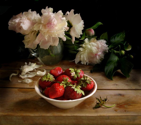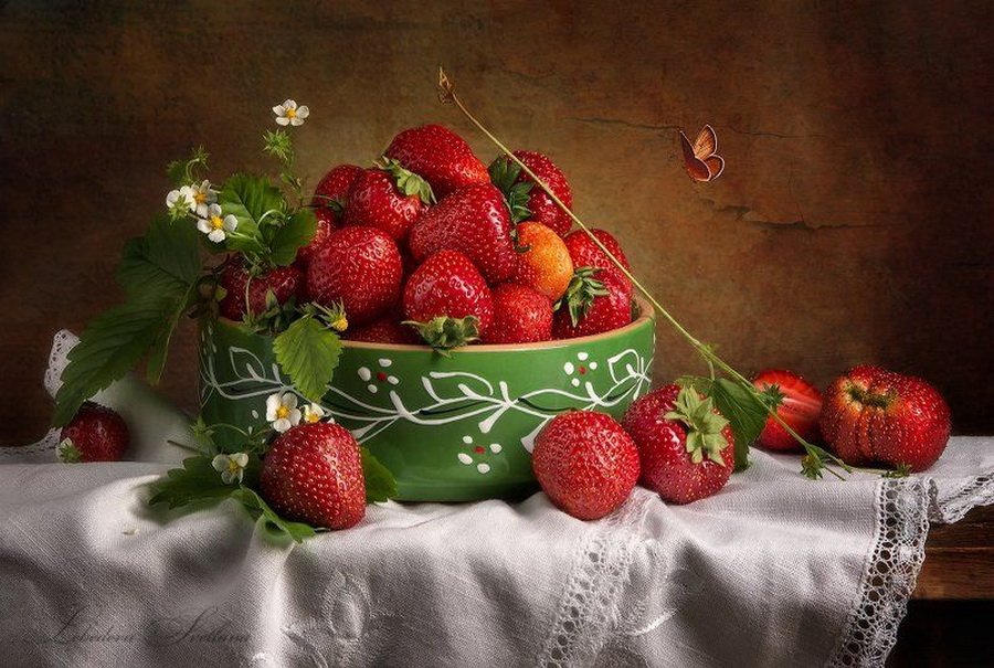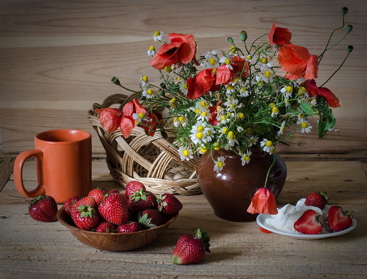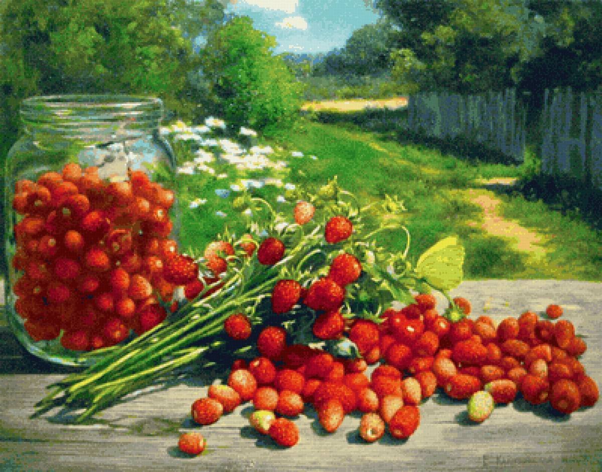 Натюрморт с земляникой - это изображение, которое запечатлевает красоту и свежесть этого сочного ягодного плода. Это композиция, в которую входят свежие, спелые ягоды земляники, расположенные на стильной подставке или в корзинке. Натюрморт создает атмосферу летнего благоухания и натуральности, принося радость и аппетит своим наблюдателям. Каждая деталь, каждая капля росы на ягодах передают всю прелесть и естественность этого плода, делая его предметом восхищения и желания. В таком натюрморте можно увидеть не только красивое повествование о природе и богатстве ее плодов, но и насладиться их вкусом, отраженным на изображении.