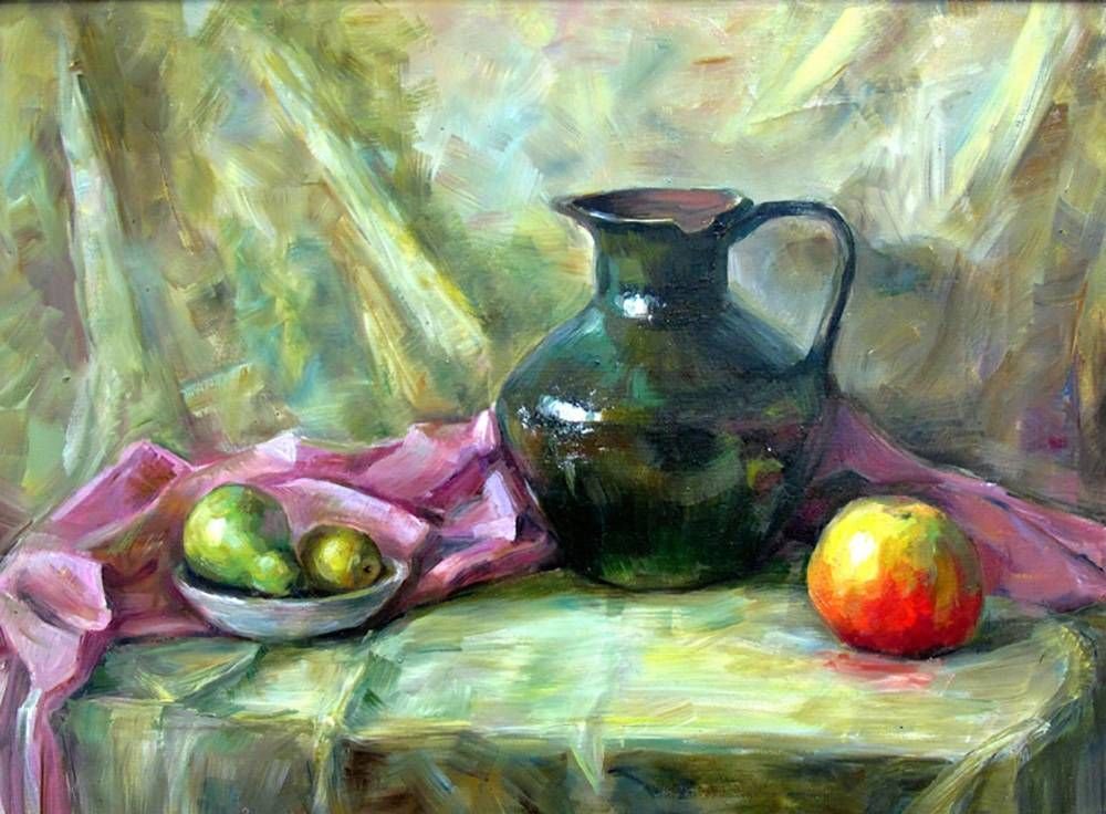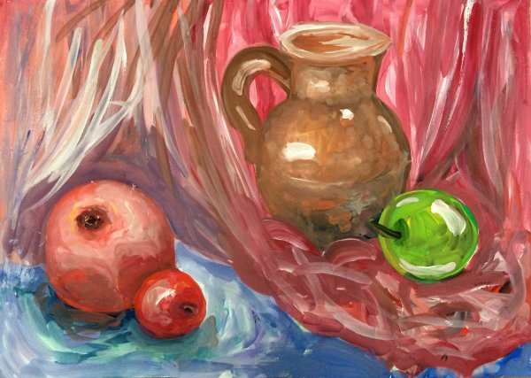 Натюрморт с кувшином и фруктами, выполненный техникой гуашь, является великолепным произведением искусства, которое привлекает внимание своей красотой и изящностью. Кувшин, окрашенный мастером с изумительной тонкостью и детализацией, придает композиции особый шарм и глубину. Фрукты, разнообразные и сочные, расположены рядом с кувшином, создавая приятное ощущение живости и свежести. Цветовая гамма произведения, обогащенная яркими оттенками фруктов и нюансами кувшина, создает гармоничную атмосферу и передает богатство и разнообразие природы. Это уникальное творение способно украсить любое помещение, станет прекрасным акцентом в интерьере и вызовет восхищение у каждого наблюдателя.