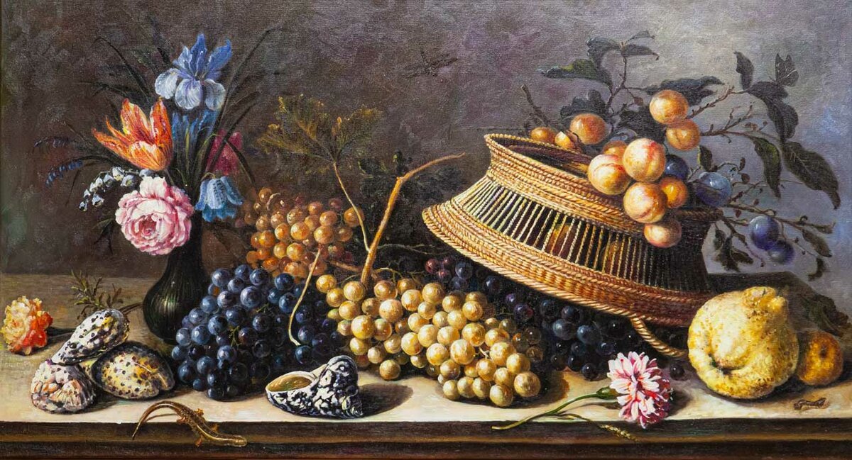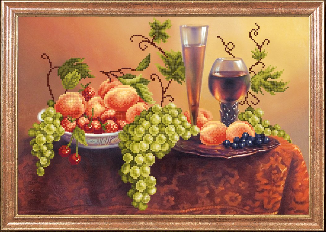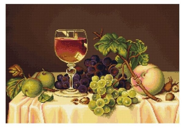 Представьте себе элегантный натюрморт, который воплощает изысканный стиль и роскошь. Он оживляется перед вашими глазами с изображением богато сервированного стола, украшенного бутылкой вина и разнообразными сочными фруктами. Эта композиция создает атмосферу праздника и изобилия, приглашая вас насладиться обильностью цветов и текстур. Каждый элемент, начиная от переливающихся тонов вина до свежести и яркости фруктов, тщательно проработан и дарит ощущение полного слияния с природой. Панна натюрморт с вином и фруктами - это произведение искусства, которое не только украшает интерьер, но и позволяет вам насладиться красотой жизни и моментами благостного наслаждения.