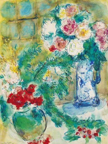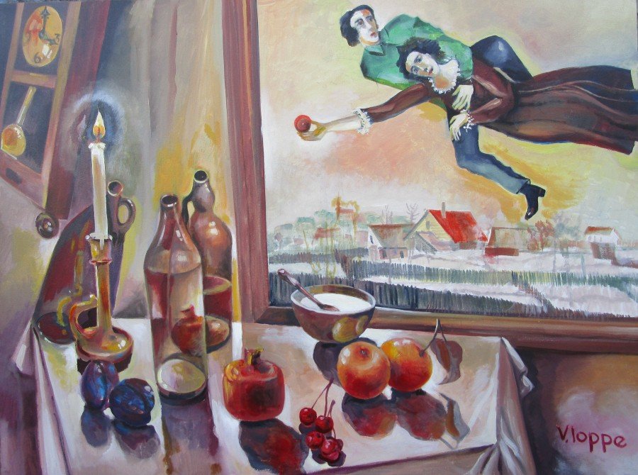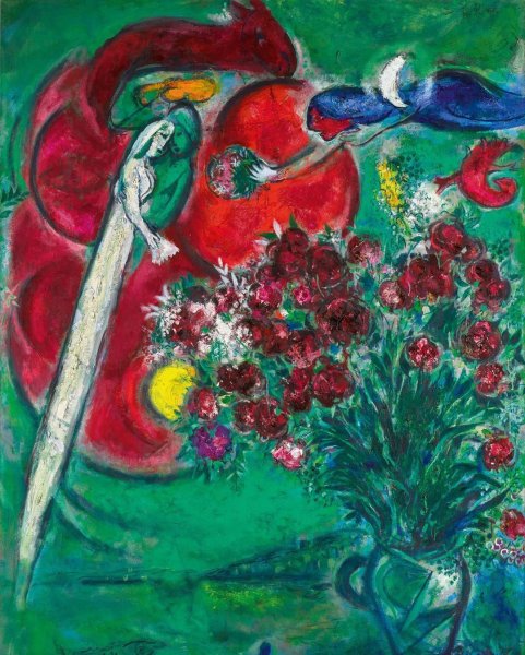 Натюрморт Марка Шагала - это произведение искусства, которое отражает уникальный стиль и талант этого неподражаемого художника. В своем натюрморте Шагал создает гармоничное сочетание цветов, форм и текстур, воссоздавая живописные композиции из различных предметов: фруктов, цветов, посуды и других элементов. Его яркие и насыщенные краски, свободная игра линий и фигур, а также фантастический сюрреализм делают его натюрморты необычными и привлекательными. Каждый натюрморт Марка Шагала - это источник радости и вдохновения, который позволяет зрителю увидеть мир со свежими глазами и оценить прекрасное в мельчайших деталях.