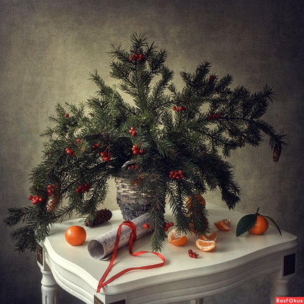 Натюрморт с еловыми ветками - это произведение искусства, которое захватывает взгляд своей красотой и атмосферой праздника. В центре композиции расположены эловые ветки, усыпанные белым снегом или украшенные мерцающими огнями рождественских гирлянд. Они придают натюрморту особый колорит и символизируют радость и ожидание наступающего Рождества. Вокруг веток можно увидеть различные новогодние атрибуты - шары, подарки, конфеты, что создает ассоциации с теплом семейного праздника. Используя такой натюрморт в интерьере, можно привнести в дом атмосферу зимнего волшебства и воплотить все самые светлые и теплые чувства праздника.