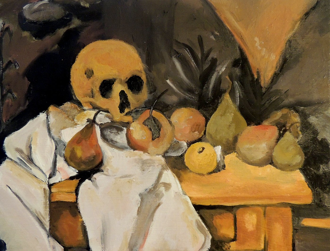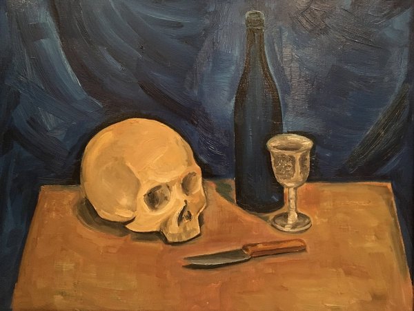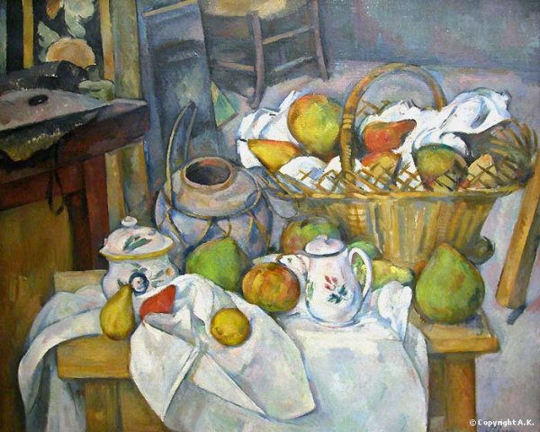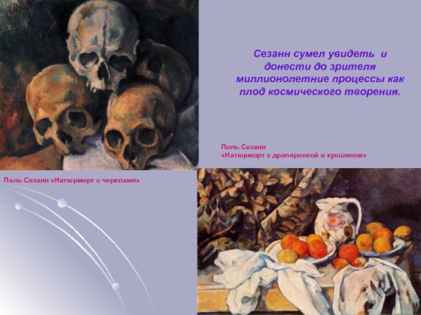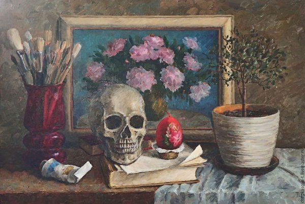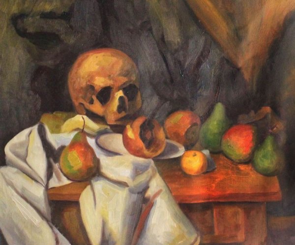 Натюрморт с черепом и подсвечником - это одна из самых известных работ французского художника Поля Сезанна. В этой картинах Сезанн представляет нам необычное сочетание объектов - черепа и подсвечника, создавая загадочную и атмосферную композицию. Он использует свою характерную технику, основанную на множестве коротких и резких мазков кисти, чтобы передать глубину и объемность каждого предмета. Череп символизирует смерть, а подсвечник напоминает о преходящей природе времени. Картина вызывает размышления о тленности жизни и вопросы о смысле бытия. Это произведение иллюстрирует уникальный стиль Сезанна, который отличается от традиционного понимания живописи и становится важным элементом истории искусства.
