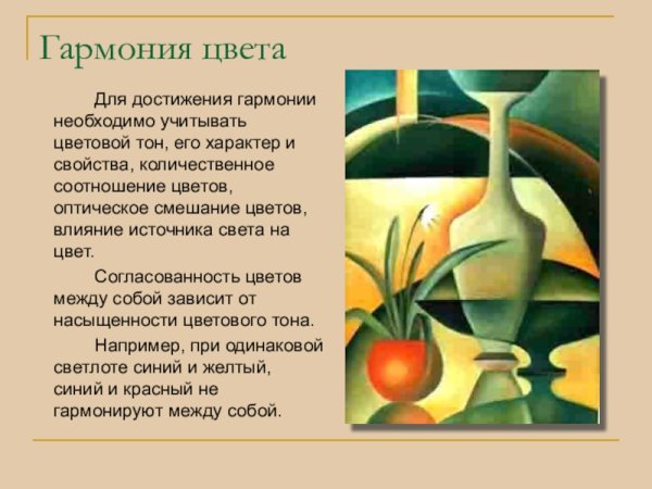 Натюрморт, созданный с учетом гармонии по общему цветовому тону и светлоте, олицетворяет непринужденность и элегантность. В таком произведении искусства все элементы, начиная от предметов и заканчивая фоном, сочетаются в единой палитре, создавая приятное и гармоничное впечатление. Цветовые оттенки и интенсивность освещения выбираются таким образом, чтобы подчеркнуть красоту и изящество рассматриваемых объектов, при этом не перегружая композицию лишними деталями. Гармония по общему цветовому тону и светлоте в натюрморте позволяет зрителю насладиться красотой и спокойствием этого жанра искусства.
