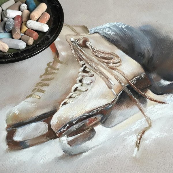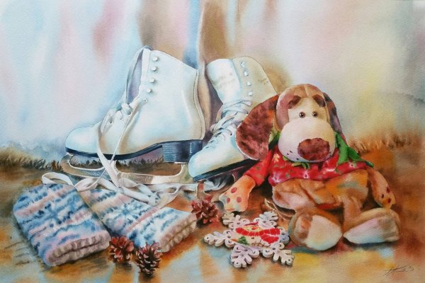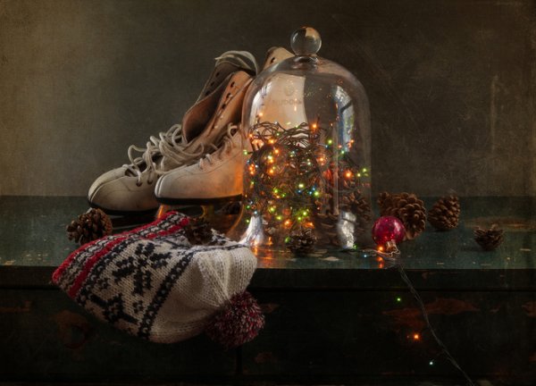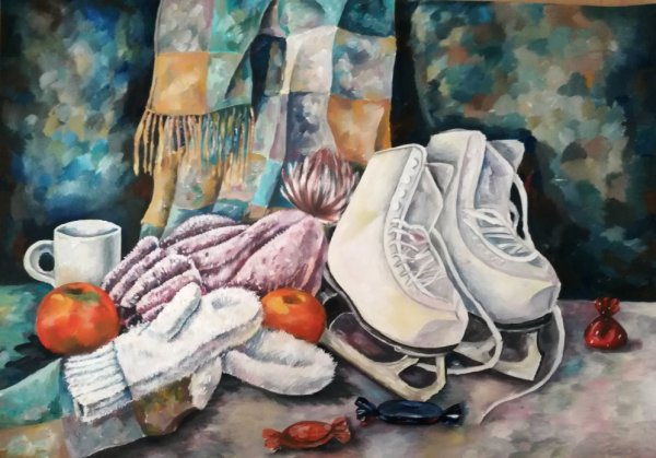 Натюрморт с коньками представляет собой уникальную композицию из новогодних элементов и символов зимы. В этом мастерски созданном произведении искусства можно увидеть пару стильных и ярких коньков, которые становятся главными героями натюрморта. Их ледяная поверхность переливается на солнце, создавая впечатление свежего искрящегося снега. Коньки стоят на фоне разнообразных новогодних декораций - гирлянд, елочных игрушек, рождественских шаров. Этот натюрморт наполняет пространство праздничной атмосферой, принося радость и тепло всем, кто его видит. Он может стать не только оригинальным элементом интерьера, но и отличным подарком для близких и друзей, добавляя в их жизнь магию и волшебство Нового Года.