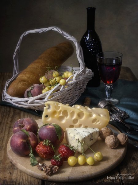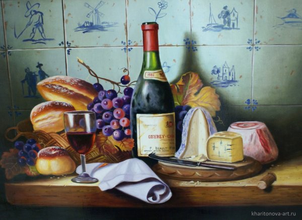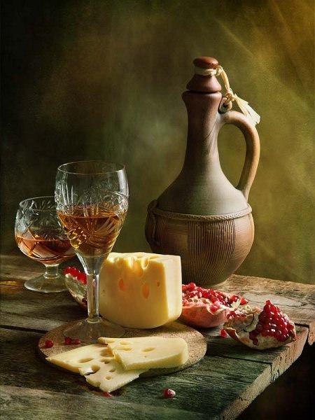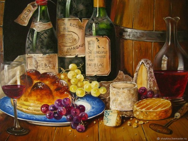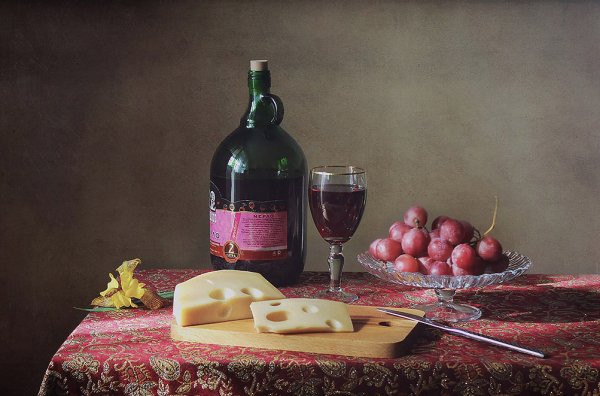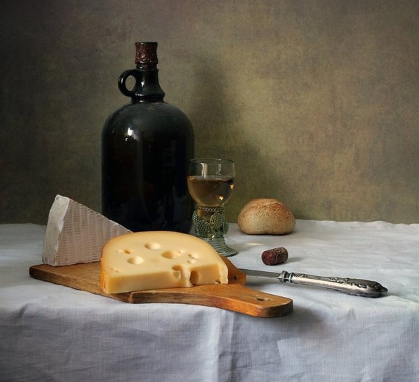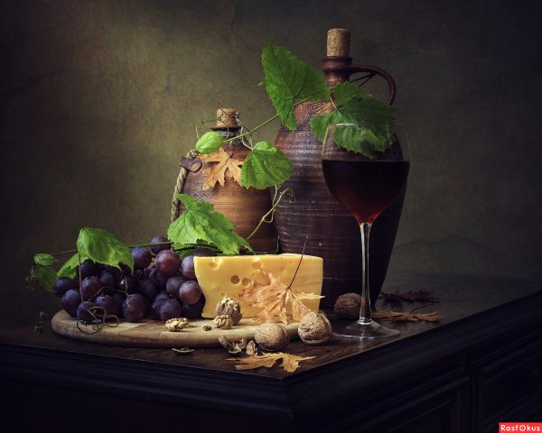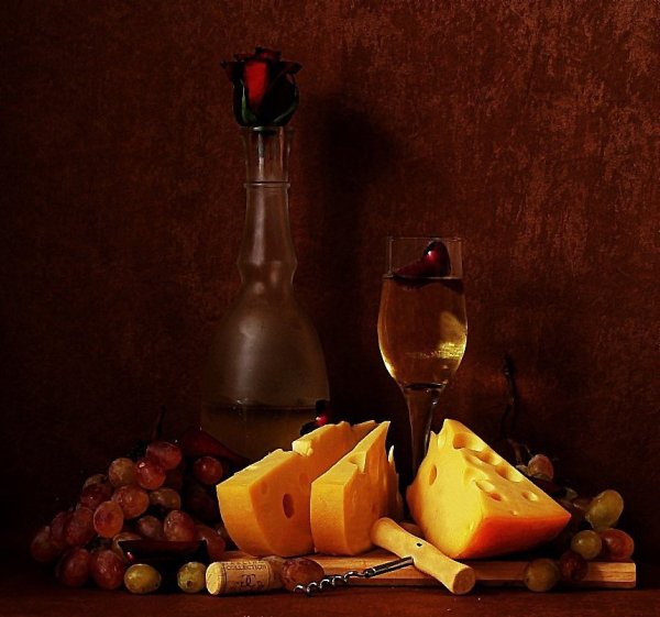 Наши глаза не могут пройти мимо натюрморта, на котором изображены аппетитные кусочки сыра, украшенные свежей зеленью, и бутылка красного вина. Это произведение искусства словно приглашает нас на увлекательное путешествие в мир вкусов и ароматов. Аппетитные твердые и мягкие сорта сыра, такие как чеддер, гауда, рокфор и камамбер, создают целый спектр текстур и вкусовых ощущений. В сочетании с утонченным и полнотелым вином, каждая пара сыра и вина становится идеальным сочетанием, раскрывая все их вкусовые особенности и комплементарность. Натюрморт с сыром и вином - это не только эстетическое удовольствие, но и возможность насладиться истинной гастрономической гармонией.