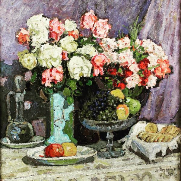 Натюрморт Петровичева - это прекрасное произведение искусства, созданное талантливым художником по имени Петрович. Этот натюрморт восхищает своей красотой и глубиной. На картине изображены различные предметы, такие как фрукты, цветы, посуда или другие элементы, которые привлекают внимание зрителя. Разнообразие цветов и текстур, мастерски переданные на полотне, создают ощущение реальности и придают картине особый шарм. В каждой детали можно увидеть внимание к деталям и любовь к искусству. Натюрморт Петровичева позволяет нам насладиться красотой обыденных вещей и открыть для себя новые перспективы.