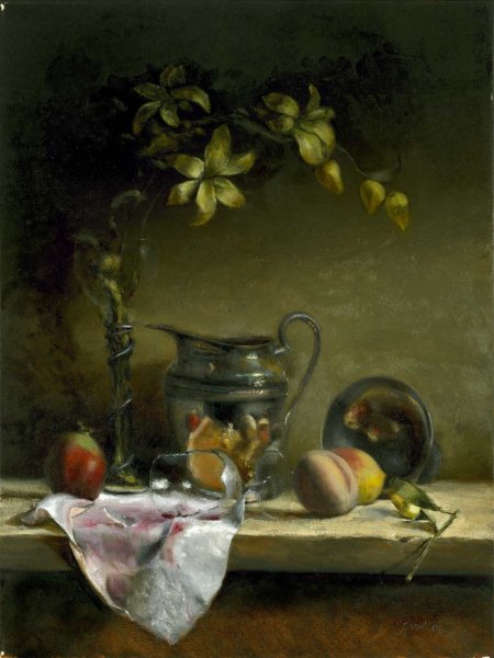 Натюрморт "Триада" представляет собой уникальное произведение искусства, которое воплощает в себе три главных элемента природы: землю, воду и воздух. Картина раскрывает перед зрителем прекрасное сочетание цветов, форм и текстур, создавая гармоничный образ. В центре композиции находится нежная, живая лилия, символизирующая чистоту и красоту природы. Вокруг нее расположены различные фрукты, цветы и другие предметы, которые дополняют общую атмосферу произведения и создают ощущение полноты и естественности. Натюрморт "Триада" - это прекрасное искусство, призванное напомнить нам о великолепии окружающего мира и его богатстве.