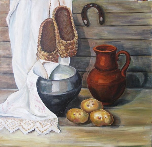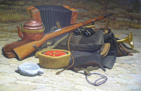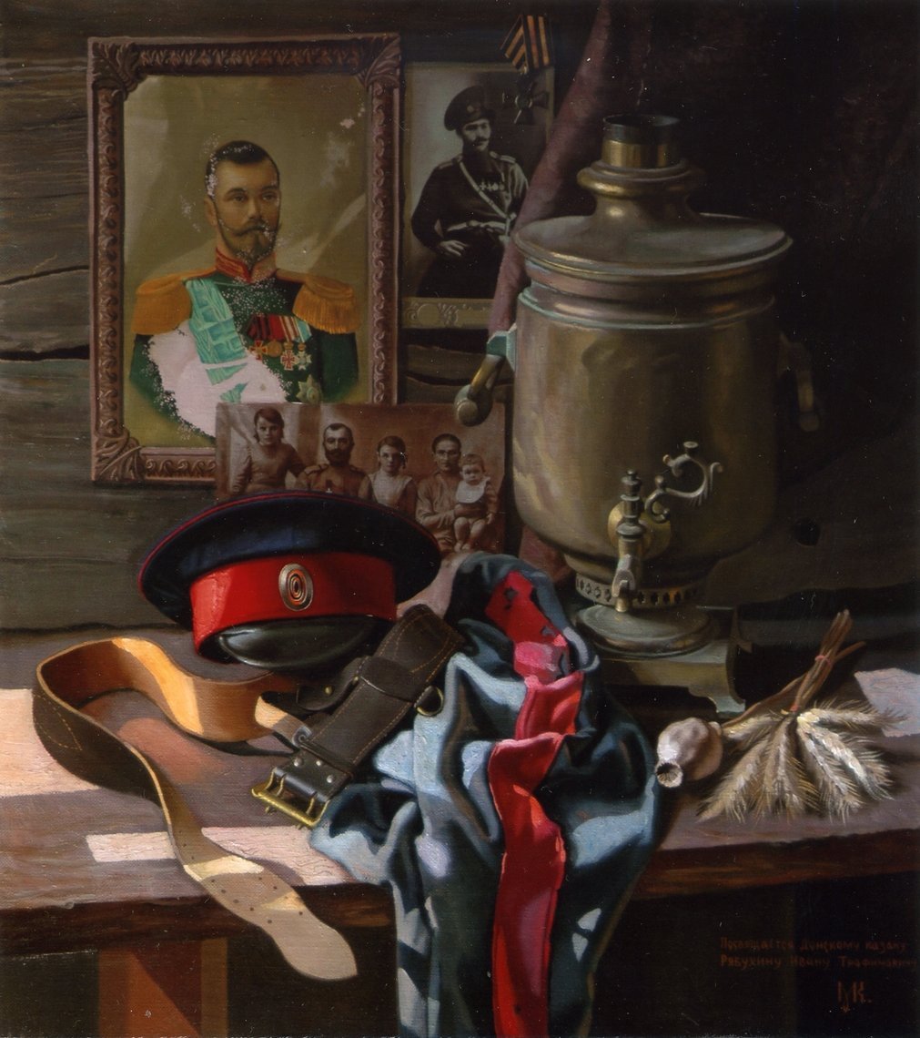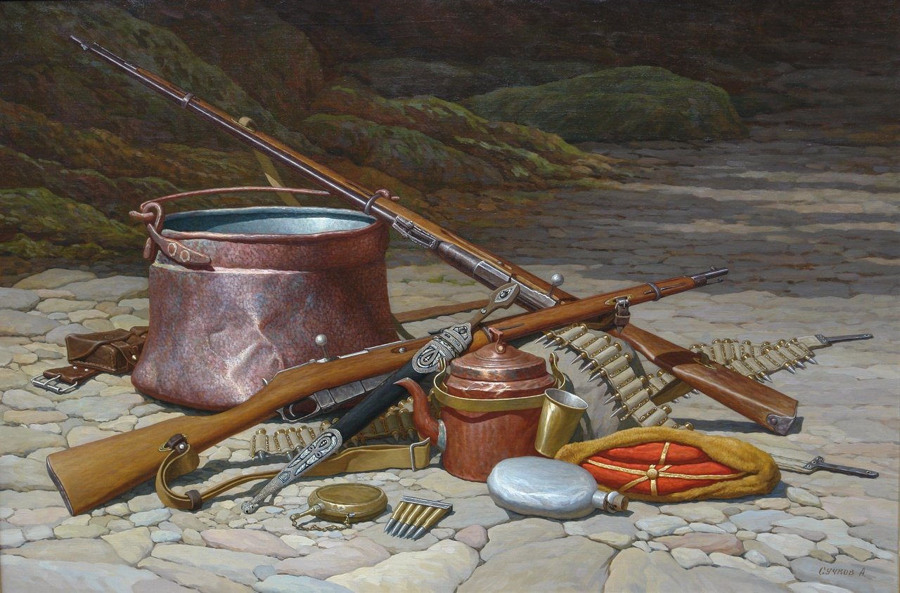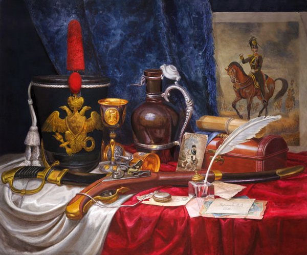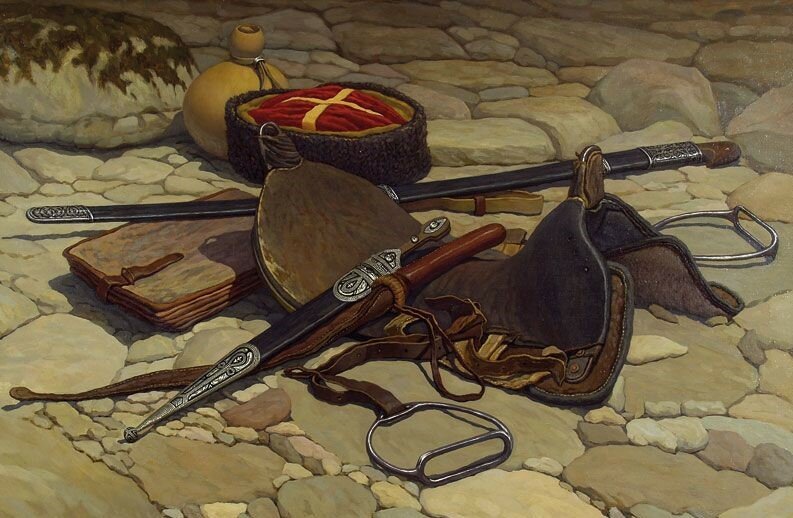 Казачий натюрморт - это изображение, которое переносит зрителя в атмосферу далекого прошлого и передает дух казачества. В этом натюрморте можно увидеть различные предметы и символы, характерные для казаческой культуры: шашки, сабли, уздечки для коней, казачьи шляпы и пушки. Каждый деталь тщательно прорисована и воссоздана с огромной любовью к истории и наследию казаков. Казачий натюрморт является не только художественным произведением, но и своеобразным окном в прошлое, которое помогает нам лучше понять и уважать наши исторические корни.