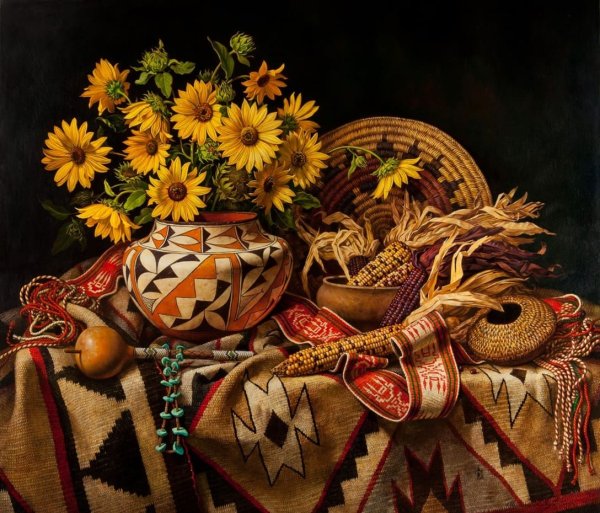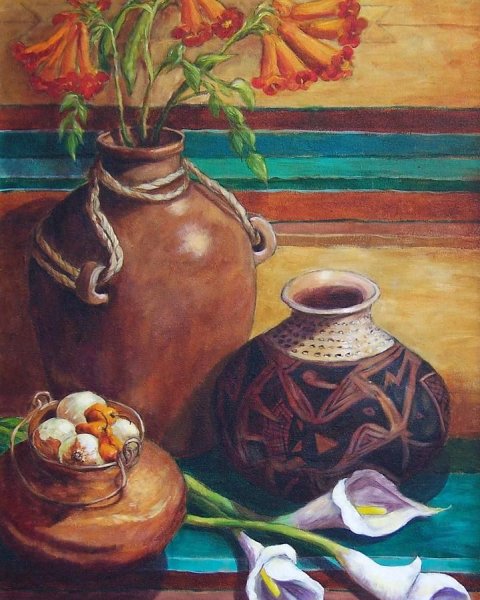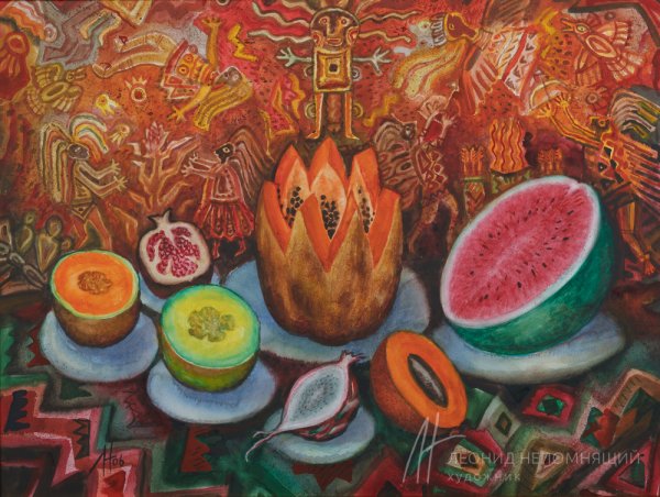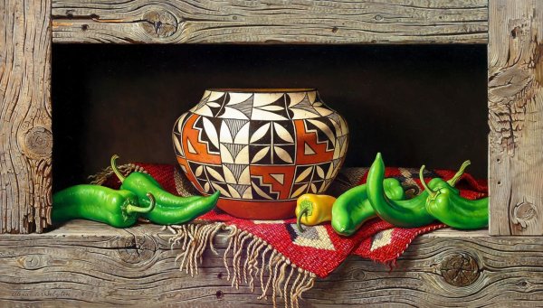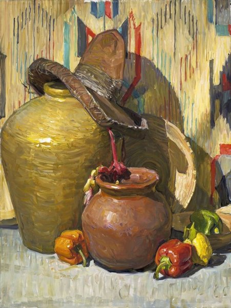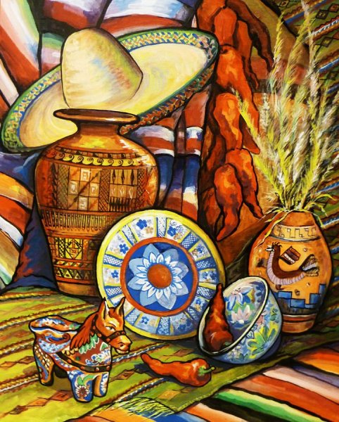 Мексиканский натюрморт - это художественное изображение, которое передает богатство и красоту мексиканской культуры через сцены из повседневной жизни и традиционные элементы. В таких натюрмортах можно увидеть яркие цвета, экзотические фрукты, цветочные композиции, а также предметы, характерные для Мексики, такие как глиняные посуда, серебряные украшения и текстильные изделия. Эти произведения искусства придают интерьеру оригинальность и создают атмосферу тепла и радости. Сочетание ярких оттенков и детальная проработка каждого элемента делают мексиканский натюрморт поистине уникальным и привлекательным.