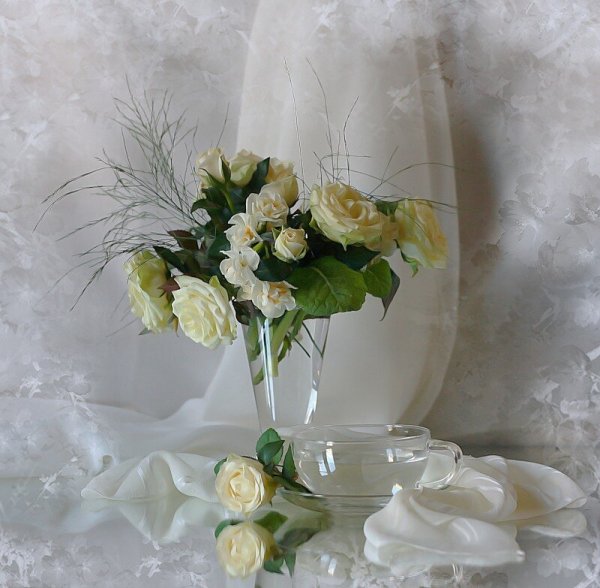 Свадебный натюрморт - это уникальная и элегантная композиция из цветов, декоративных элементов и аксессуаров, созданная специально для свадебного торжества. Он является важной частью оформления стола молодоженов или праздничного зала, придавая особую романтичность и изысканность атмосфере. Свадебный натюрморт может быть выполнен в различных стилях - от классического и роскошного до минималистичного и современного. В его состав могут входить свежие или искусственные цветы, ленты, свечи, фрукты, украшения и другие детали, которые подчеркивают индивидуальность и прекрасный вкус молодых людей. Каждый свадебный натюрморт уникален и создается с любовью и заботой, чтобы добавить особое очарование и красоту в день свадьбы.