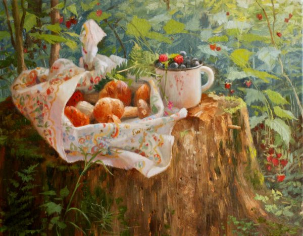 Лес натюрморт - это удивительное сочетание природы и искусства. В этом таинственном и живописном уголке природы каждая деталь оказывается пропитанной гармонией и красотой. Здесь можно насладиться мощью старых деревьев, изяществом листьев, переливами солнечного света сквозь листву. Лес натюрморт призывает забыть о суете мирской жизни и погрузиться в медитативную атмосферу природной красоты. Это место, где каждый шаг наполнен волшебством и где время замирает, чтобы подарить возможность насладиться чудесами живой природы.