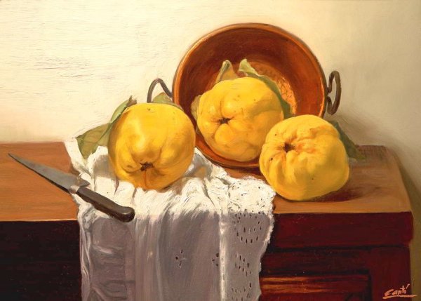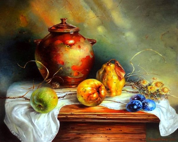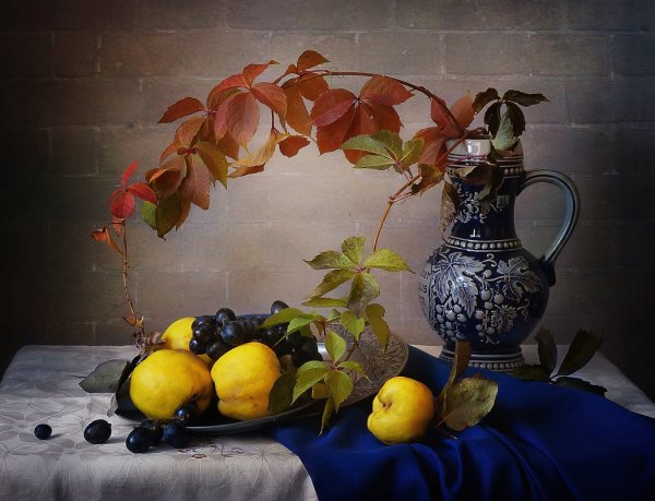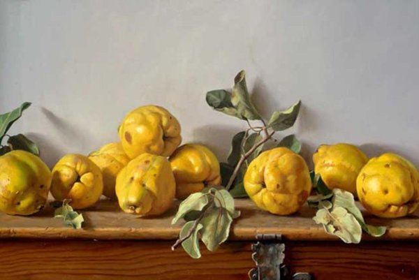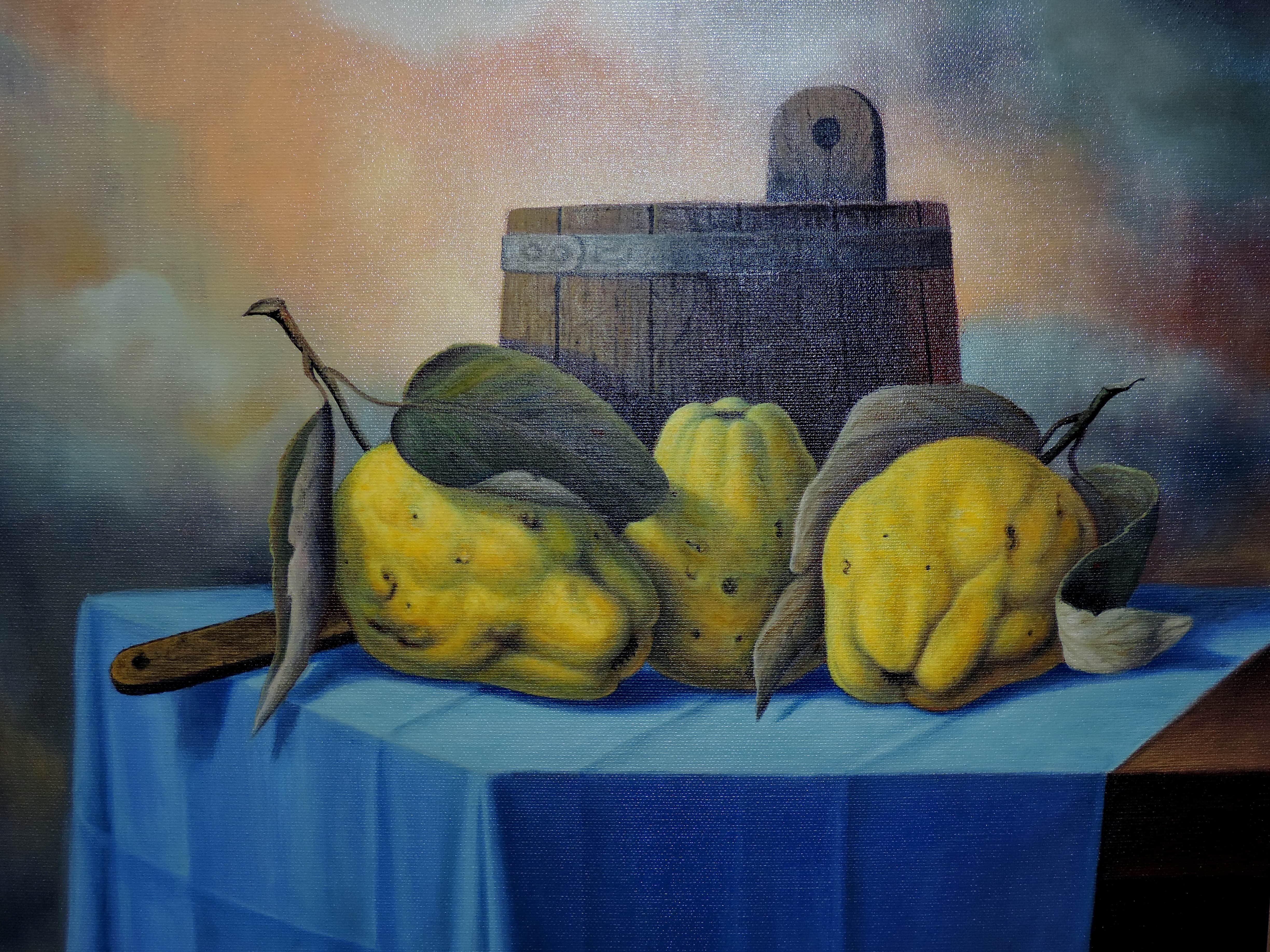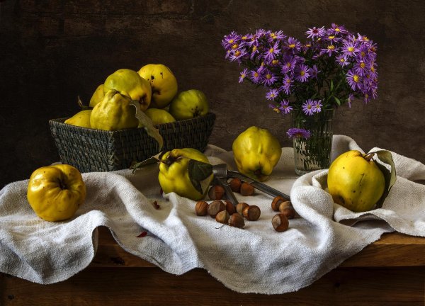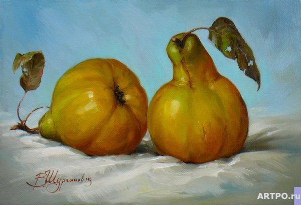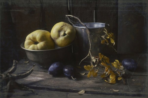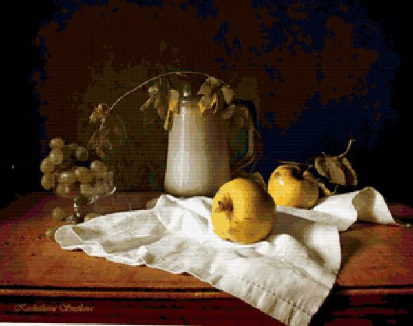 Натюрморт с айвой - это живописное произведение, в котором яркие и сочные плоды айвы становятся главными героями. Картина захватывает своей простотой и одновременно удивительной красотой. Художник смело играет с оттенками зелени, создавая эффектный контраст между темными листьями и яркими оранжевыми и красными плодами. Натюрморт с айвой выглядит очень реалистично, словно можно потрогать каждый плод и почувствовать его неповторимый аромат. Это произведение искусства наполняет пространство теплотой и природной энергией, вызывает желание окунуться в мир природы и насладиться ее богатством.