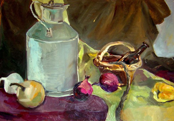 Натюрморт с бидоном - это произведение искусства, которое воплощает красоту и эстетику простых предметов повседневной жизни. В этом натюрморте изображен бидон, который символизирует силу и практичность. Благодаря мастерскому использованию света и теней, художник передает объем и текстуру предмета, делая его почти осязаемым для зрителя. Очаровательная композиция и яркие цветовые акценты создают гармоничное и привлекательное изображение, которое приковывает внимание и вызывает интерес. Натюрморт с бидоном является идеальным элементом интерьера, добавляющим стиль и оригинальность любому помещению.