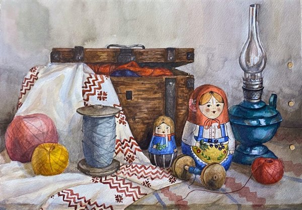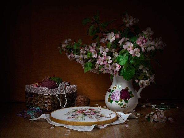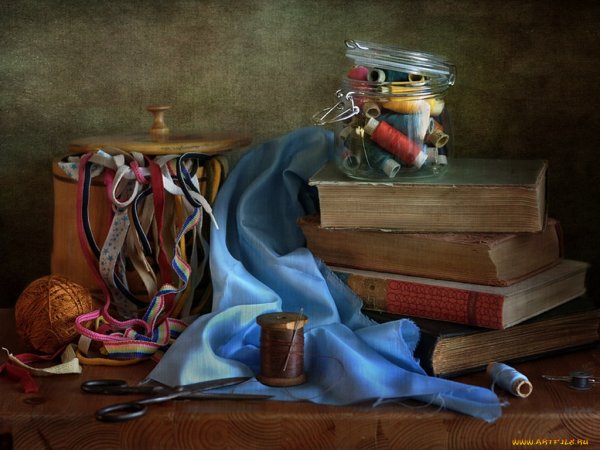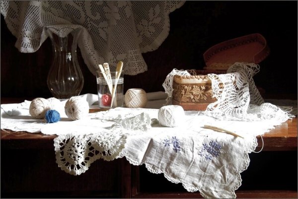 Натюрморт "Рукодельницы" - это произведение искусства, которое удивляет своей тщательной проработкой и неповторимой атмосферой. Картина передает образ женщины, занятой рукоделием, окруженной предметами ее мастерства. На фоне ткани с вышитыми цветами и кружевами расположены шитье, вязание и другие принадлежности для рукоделия. Каждая деталь изображения тщательно проработана, отражая уровень мастерства и любовь к рукоделию. Эта картина напоминает нам о том, что рукоделие - это не только хобби или профессия, но и способ самовыражения и создания чего-то уникального. Натюрморт "Рукодельницы" захватывает нас своей красотой и вызывает интерес к миру рукоделия и творчества.