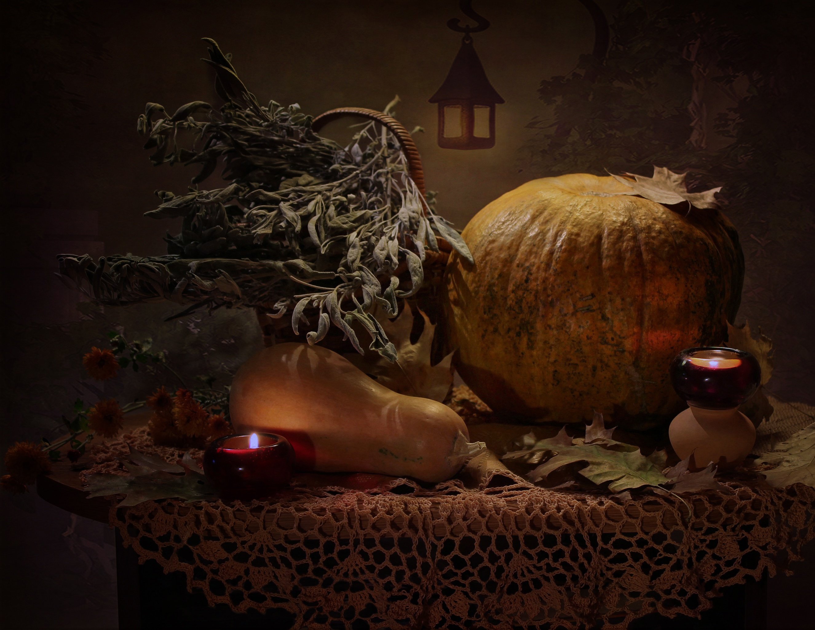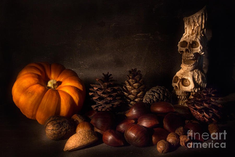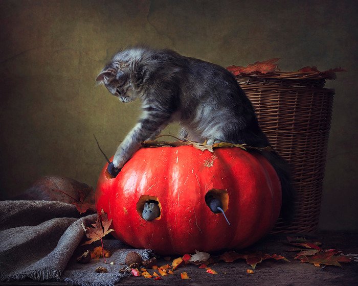 Хэллоуинский натюрморт - это зрелищное произведение искусства, которое заставляет нас окунуться в атмосферу таинственности и мистики праздника Хэллоуин. Каждый элемент этого натюрморта создан с особым вниманием к деталям, чтобы передать атмосферу таинственности и ужаса этого праздника. Подсвеченные свечами тыквы, висящие пауки и паутинки, черные кошки и летучие мыши, все это воплощает в себе мрачный характер Хэллоуина. Натюрморт Хэллоуина не только является украшением для праздничного стола, но и вызывает неподдельные эмоции и впечатления, оставляя незабываемые воспоминания о самом загадочном времени года.