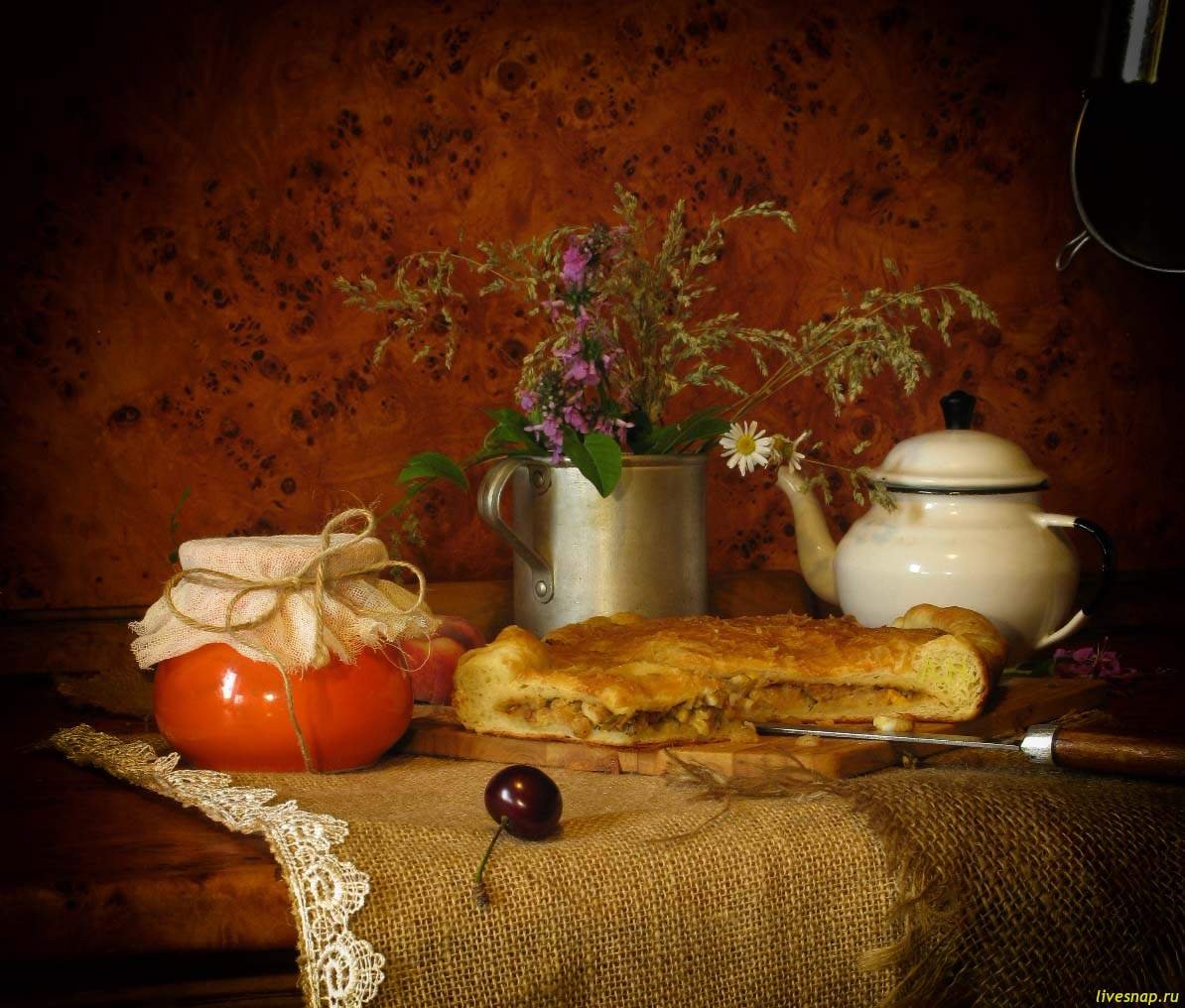 Пирог натюрморт - это уникальное сочетание вкуса и красоты, которое поразит всех гурманов. Этот пирог представляет собой настоящее произведение искусства, где каждая деталь создана с любовью и вниманием к деталям. Он обладает нежным тестом, идеально слоистым и ароматным, в котором можно ощутить нотки свежих фруктов и специй. Натюрморт на поверхности пирога состоит из ярких и сочных фруктов, цветов и зелени, создавая яркую и привлекательную картину. Пирог натюрморт не только радует глаз, но и вызывает неподдельный восторг от его невероятного вкуса.