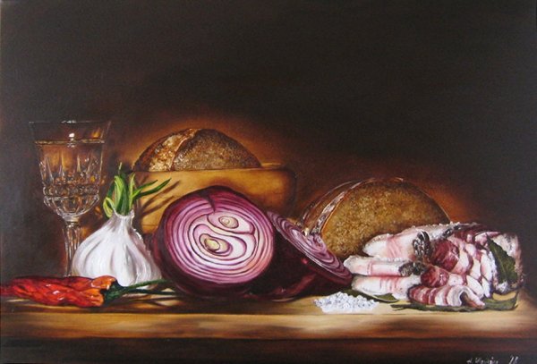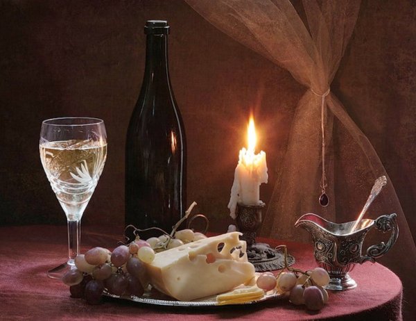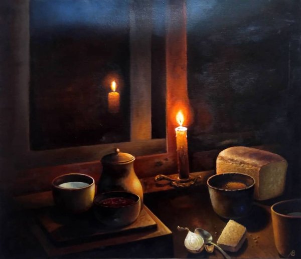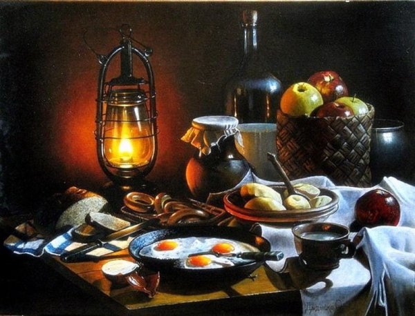Натюрморт "Ужин" - это произведение искусства, которое воссоздаёт обстановку уютного и изысканного ужина. Картина позволяет зрителю окунуться в атмосферу традиционного ужина с его прекрасно сервированным столом и разнообразными блюдами. Благодаря мастерскому использованию света и теней, каждый элемент композиции выглядит живым и реалистичным. Увлекательная игра цветов и текстур создает ощущение настоящего прикосновения к предметам и продуктам на столе. Натюрморт "Ужин" является выразительным отображением богатства и изобилия, а также приглашением насладиться яркими кулинарными впечатлениями.