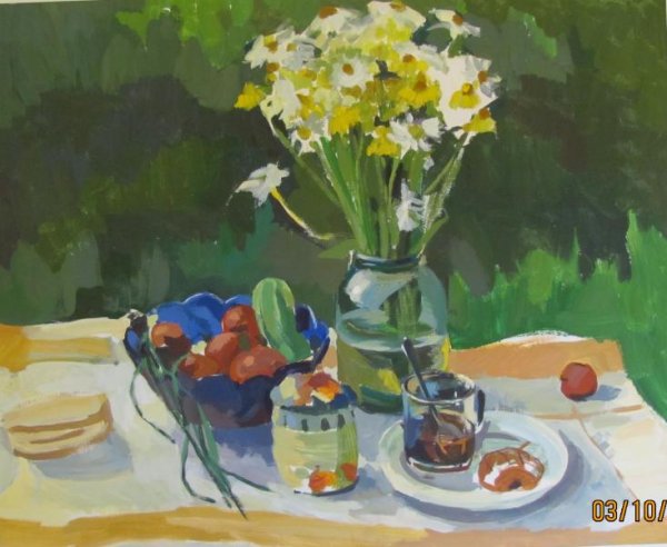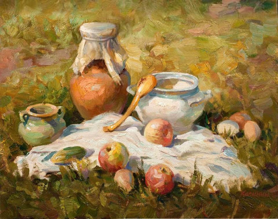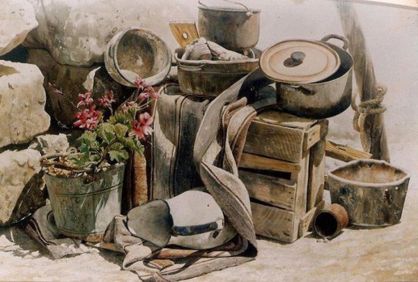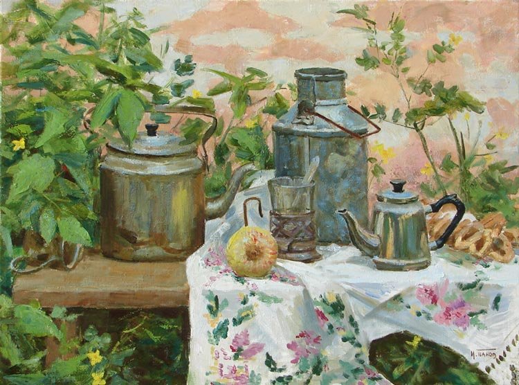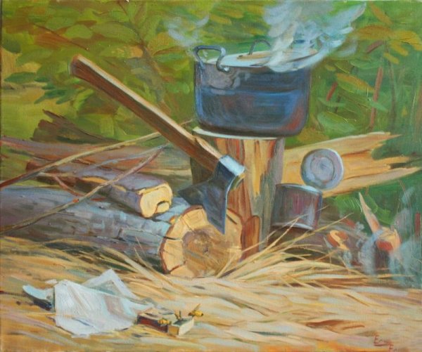 Натюрморт походного быта - это произведение искусства, в котором изображены предметы, связанные с походом и отдыхом на природе. Этот натюрморт может включать в себя такие объекты, как палатки, спальные мешки, кухонную утварь, кружки, термосы, рюкзаки и прочие предметы, необходимые для комфортного пребывания на природе. В таком произведении искусства, часто используются яркие цвета и мягкие тени, чтобы передать атмосферу спокойствия и умиротворения, которую можно испытать, находясь вдали от городской суеты. Натюрморт походного быта может быть прекрасным украшением интерьера, помогая создать атмосферу свободы и приключения даже в самых обычных условиях.