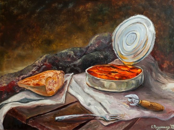 Натюрморт "консервы" - это произведение искусства, в котором художник изображает различные виды консервированных продуктов. Это может быть банка с овощами, баночка с фруктами или даже коробка с консервами мяса. Каждый предмет располагается так, чтобы создать гармоничную композицию и передать ощущение прочности и стабильности, свойственных консервированным продуктам. В натюрморте "консервы" можно увидеть яркие цвета и отражения на поверхностях банок, что придает работе особую живость. Такое произведение искусства может быть как классическим, выполненным в реалистическом стиле, так и современным, экспериментальным, использующим необычные материалы или техники. Натюрморт "консервы" может быть прекрасным украшением интерьера, а также вызывать воспоминания о приятных и вкусных моментах жизни. Он может вызвать у зрителя чувство комфорта и благополучия, а также напомнить о значимости сохранения и долговременного хранения пищевых продуктов.