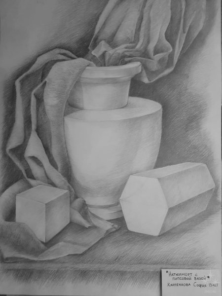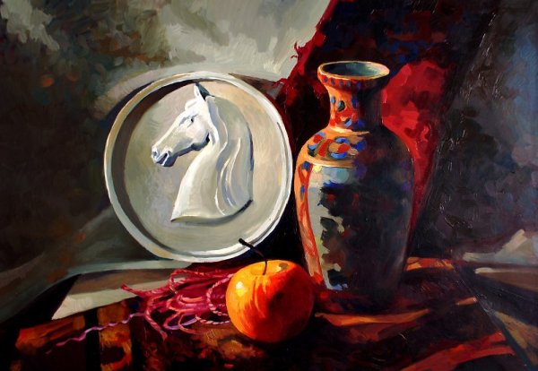 Натюрморт с гипсовой вазой - это произведение искусства, которое захватывает взгляд своей красотой и умиротворяющей атмосферой. Гипсовая ваза, стоящая на фоне тщательно подобранных предметов, создает ощущение гармонии и спокойствия. Цветочные композиции или фрукты, размещенные внутри вазы, добавляют ярких акцентов и придают живость всему натюрморту. Мастерство художника, отображенное в каждой детали, делает эту картину по-настоящему особенной. Натюрморт с гипсовой вазой - это прекрасное воплощение эстетической красоты и приглашение окунуться в мир изысканности и гармонии.