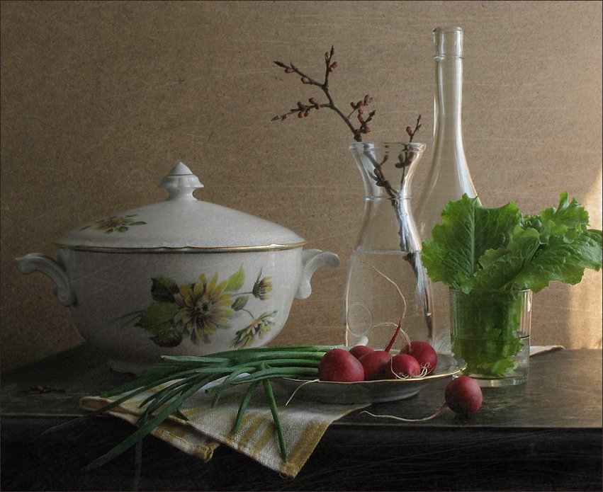 Натюрморт "Зелень" - это произведение искусства, которое воплощает красоту и живость зелени. В этом натюрморте каждая деталь тщательно подобрана и расположена таким образом, чтобы передать свежесть и жизненную силу растений. Здесь вы найдете разнообразные оттенки зелени - от яркой и сочной до мягкой и пастельной. Каждый листок, каждая веточка имеют свою форму и текстуру, создавая гармоничную композицию. Этот натюрморт наполняет пространство свежим воздухом и природной энергией, принося в ваш дом ощущение спокойствия и гармонии. Он будет прекрасным украшением для любого интерьера и добавит нотку природы в вашу жизнь.
