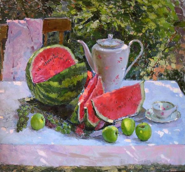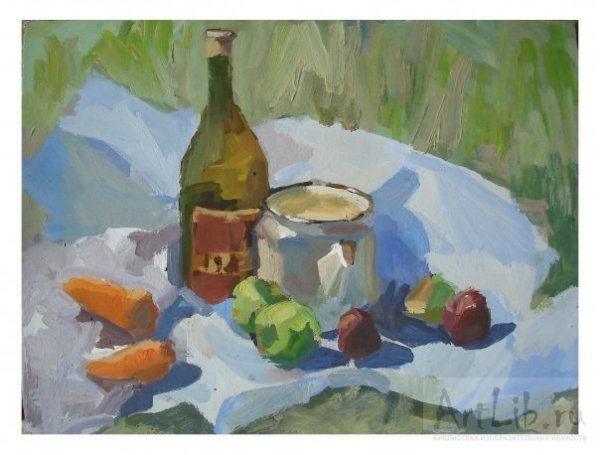 Натюрморт пленэрный - это живописный жанр, который отображает предметы и объекты из природы на открытом воздухе. Этот вид натюрморта дает возможность художнику ощутить естественное освещение, изменяющиеся цвета и текстуры, а также передать атмосферу окружающей среды. Пленэрный натюрморт может включать различные предметы, такие как фрукты, цветы, посуду или другие элементы, которые помогают создать интересную композицию. Он позволяет художнику увидеть и передать красоту и гармонию природы, сохраняя ее живость и неповторимость. Каждый пленэрный натюрморт уникален и неповторим, потому что он создается в реальном времени, захватывая моменты и эмоции. Это делает его привлекательным и интересным для зрителя, а сам процесс создания - особенно увлекательным для художника.