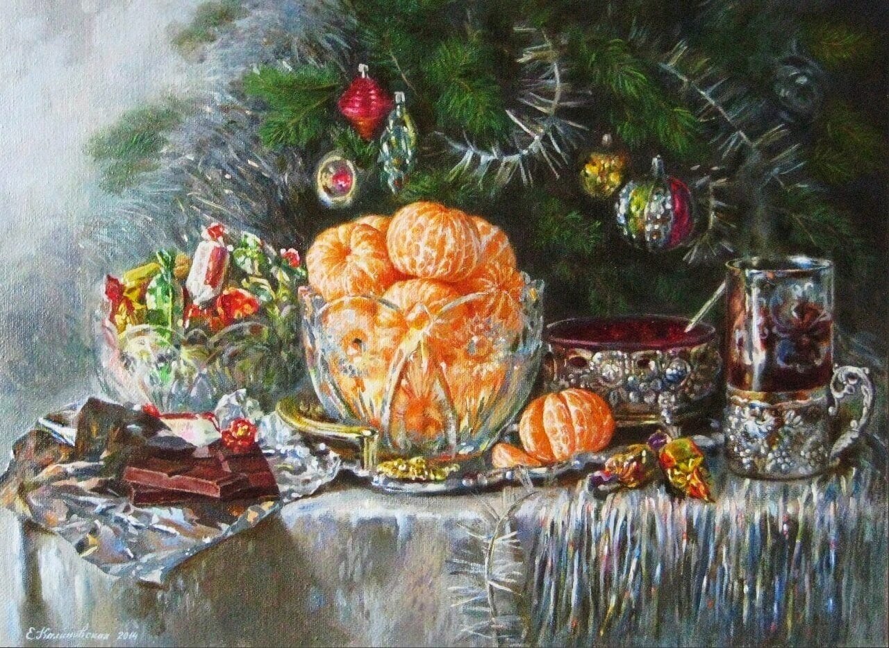 Екатерина Калиновская - талантливый художник, известная своими яркими и красочными произведениями искусства. Одно из ее неповторимых произведений - новогодний натюрморт. В этой работе она сумела передать всю волшебную атмосферу праздника: на фоне заснеженного пейзажа расположены праздничные елки, яркие гирлянды и вкусные сладости. Каждый элемент натюрморта выполнен с невероятной детализацией и любовью к деталям. Просматривая эту работу, можно почувствовать радость и ожидание предстоящего Нового года. Новогодний натюрморт от Екатерины Калиновской - это уникальное сочетание мастерства, красоты и праздничного настроения.