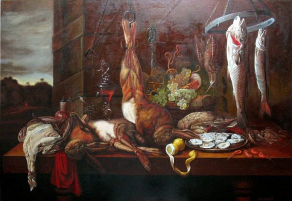 Натюрморт с битой дичью Снейдерс - это произведение искусства, которое воссоздает изысканный образ живого момента охотничьего успеха. Картина отличается точностью и реализмом, передавая каждую деталь и текстуру представленных на ней объектов. Взглянув на этот натюрморт, можно почувствовать запах свежей природы и услышать звуки лесной тишины. Битая дичь на фоне традиционного охотничьего реквизита создает атмосферу подлинности и позволяет погрузиться в мир природы и ее удивительной красоты. Такое произведение искусства станет прекрасным украшением интерьера и отличным напоминанием о силе и величии природы.