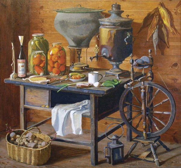 Натюрморт "Деревня" - это произведение искусства, которое изображает жизнь в сельской местности. В этой картины ярко и реалистично переданы элементы сельского пейзажа: зеленые поля, деревья, цветущие сады. На заднем плане можно увидеть традиционные деревенские постройки, такие как дома, хлевы и колодцы. В центре композиции расположены различные предметы, символизирующие работу и жизнь на селе: корзины с овощами и фруктами, косы, лопаты и другие инструменты. Натюрморт "Деревня" приносит ощущение умиротворения и спокойствия, перенося зрителя в атмосферу сельской жизни и природы. Это произведение идеально подходит для создания уютной атмосферы в интерьере, добавляя нотку природы и простоты в помещение.