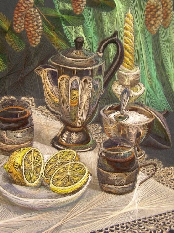 Натюрморт изонитью - это художественная композиция, в которой используются предметы и элементы природы, создающие особую атмосферу и настроение. В данном натюрморте в центре внимания находится изонитья - яркое и красивое растение с крупными соцветиями. Она становится главным акцентом в композиции, привлекая взгляд своей красотой и необычайностью. Вокруг изонитьи располагаются другие предметы - это могут быть фрукты, цветы, посуда или другие растения, которые дополняют общую картину и создают гармоничное сочетание форм, цветов и текстур. Натюрморт изонитью может быть выполнен в различных стилях и техниках, от классического реализма до современного экспрессионизма, позволяя художнику выразить свою индивидуальность и передать свои эмоции через произведение искусства.