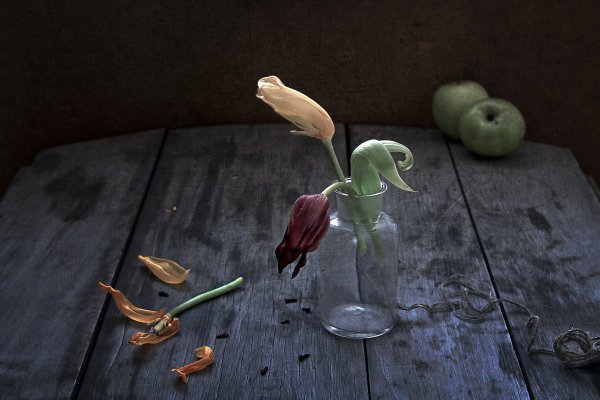 Печальный натюрморт - это произведение искусства, которое передает тоску и грусть через изображение предметов. В этом натюрморте обычно используются темные и приглушенные цвета, создающие атмосферу меланхолии. Цветы с увядшими лепестками, фрукты с трещинами и складками кожи, разбитые стеклянные предметы - все эти элементы символичны и отражают угасание и временность жизни. Печальный натюрморт может вызывать чувство тоски и задумчивости у зрителя, позволяя ему почувствовать сопричастность к преходящей природе всего сущего.