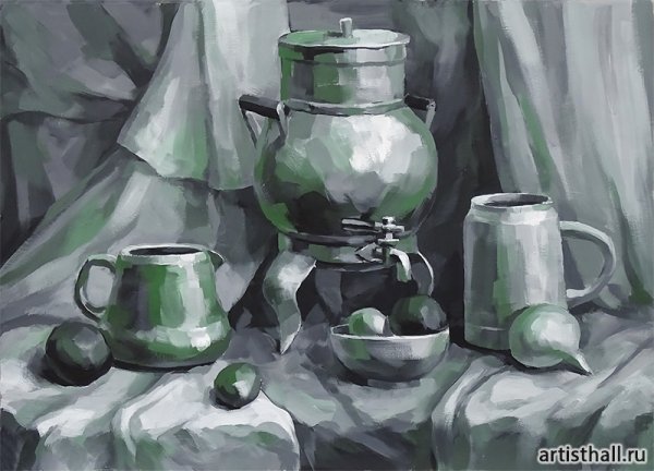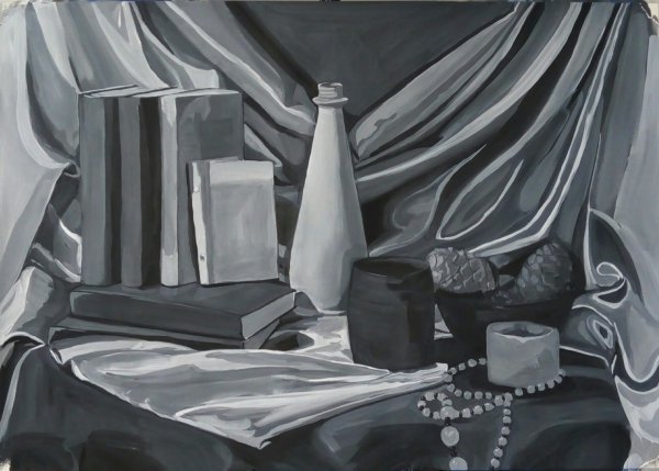 Ахроматичный натюрморт - это произведение искусства, в котором используется отсутствие цвета или использование только черного, белого и оттенков серого. Такой подход позволяет сосредоточиться на форме, текстуре и композиции объектов, создавая особую атмосферу и эмоциональную глубину работы. Ахроматичный натюрморт может быть как классическим, с изображением фруктов, цветов и предметов повседневности, так и современным, с необычными объектами и абстрактными формами. Такое искусство придает пространству особый шарм и является отличным способом выразить индивидуальность и художественное видение автора.