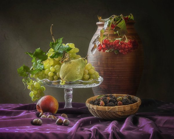 Натюрморт с ягодами - это изображение, которое передает красоту и обилие природных плодов. Ягоды в натюрморте могут быть разнообразными: сочные клубники, сладкие вишни, густые гроздья винограда или ароматные малины. Они размещаются на столе или тарелке, создавая уютную атмосферу и вызывая аппетит. Цвета ягод - от ярко-красных до глубоких фиолетовых - привлекают взгляд и пробуждают желание отведать эти сочные плоды. Натюрморт с ягодами может быть использован в интерьерном дизайне, чтобы добавить свежести, яркости и естественности в любое помещение. Это изображение напоминает о богатстве и разнообразии природы, а также вносит элементы жизненной силы и здоровья в нашу окружающую среду.