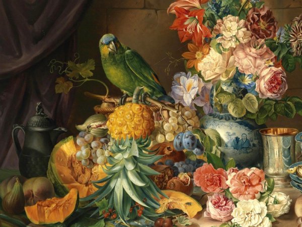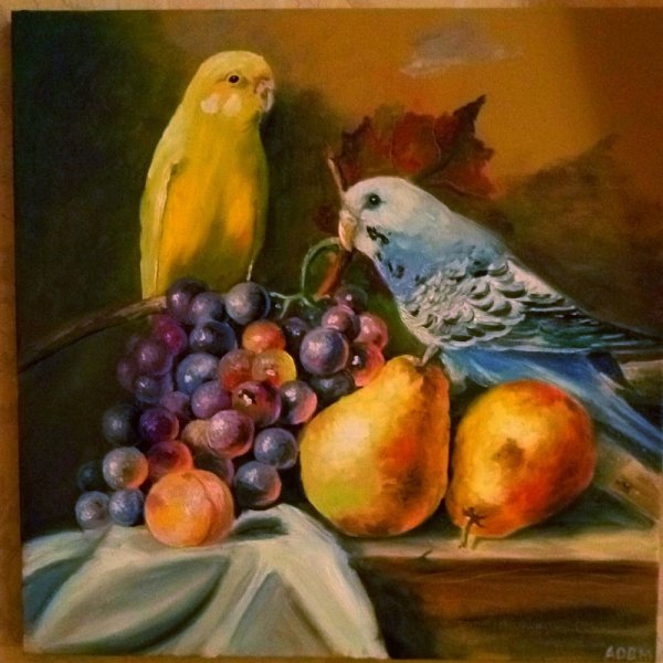 Натюрморт с попугаями - это произведение искусства, в котором изображены живописные птицы попугаи в различных позах и окружении. Эта композиция является уникальным сочетанием природного очарования попугаев и художественного таланта художника. Каждая деталь этого натюрморта передает яркость оперения, выразительность глаз и крылатость этих прекрасных созданий. Великолепные цвета, воссоздающие их естественную красоту, заставляют нас замирать от восторга. Натюрморт с попугаями идеально подходит для добавления яркости и жизнерадостности в любое помещение, становясь прекрасным акцентом в интерьере. Он обладает способностью привлекать внимание и вызывать положительные эмоции у зрителей, позволяя им насладиться красотой природы и уникальностью этих прекрасных птиц.