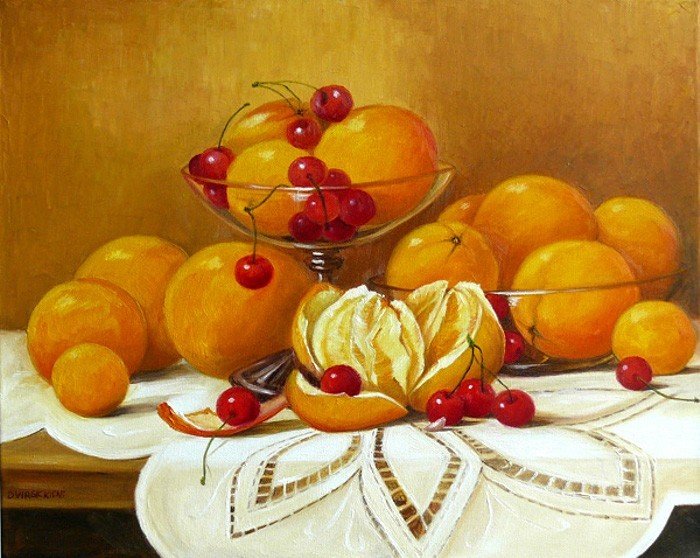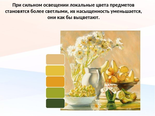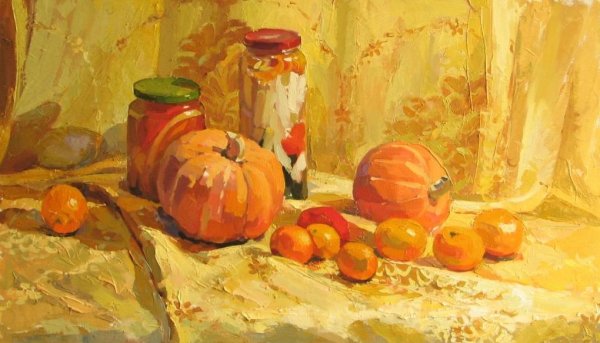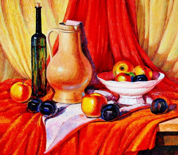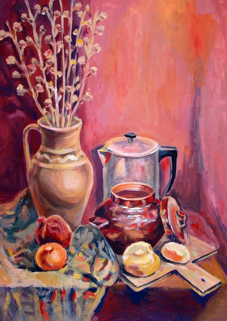 Колорит в натюрморте - это особая атмосфера и характер, который создается благодаря использованию определенных цветовых сочетаний, тонов и оттенков. Этот стиль искусства позволяет передать настроение и эмоции через цветовую гамму предметов, фруктов, цветов или других объектов, изображенных на картине. Как правило, колорит в натюрморте является ключевым элементом, который придает произведению оригинальность и уникальность. Он может быть ярким и насыщенным, создавая праздничную атмосферу, или же светлым и нежным, передавая спокойствие и гармонию. Благодаря умелому использованию цвета, художник может вызывать различные чувства и впечатления у зрителя, делая натюрморт живым и запоминающимся.