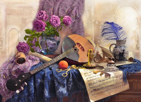 Натюрморт с нотами – это произведение искусства, которое удивительным образом сочетает в себе музыкальные элементы и живопись. Этот неповторимый вид искусства захватывает зрителя своей красотой и оригинальностью. На холсте можно увидеть разнообразные музыкальные инструменты - от фортепиано и скрипки до кларнета и трубы, а также ноты, которые легко сливаются с окружающей природой или предметами вокруг. Каждая деталь этого натюрморта пронизана музыкальным ритмом и эмоциями, создавая гармоничное и завораживающее впечатление. Уникальное сочетание цветов, теней и форм придают этому произведению особую глубину и выразительность. Взглянув на натюрморт с нотами, можно почувствовать магию музыки, которая переполняет пространство и возносит душу в небесные сферы.