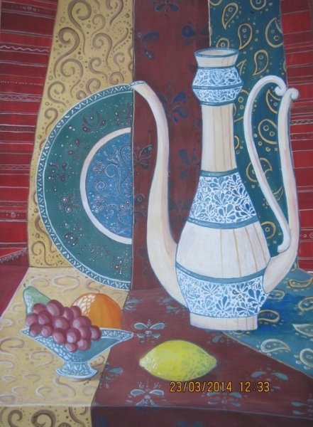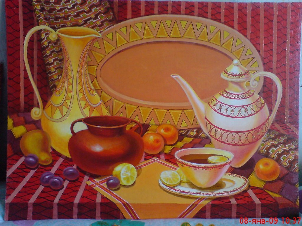 Декоративный национальный натюрморт - это уникальная форма искусства, которая воплощает в себе красоту и богатство национального наследия. Этот вид натюрморта отражает особенности и характеристики определенной культуры или страны через использование различных элементов и символов. Он может включать в себя цветы, фрукты, предметы быта, раскрашенные ткани, а также другие атрибуты, отражающие уникальность и красоту национальной эстетики. Декоративный национальный натюрморт не только является прекрасным украшением для интерьера, но и позволяет окунуться в мир и культуру определенного народа, создавая атмосферу гармонии и удивительных эмоций.