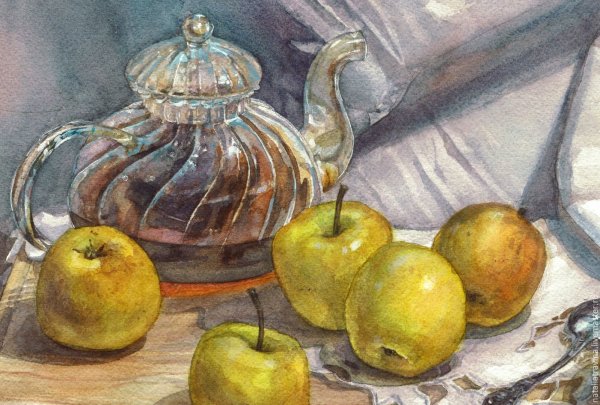 Натюрморт акварелью "Яблоки" - это произведение искусства, которое восхищает своей нежностью и естественной красотой. Каждое яблоко изображено с тонкими переливами цветов, создавая ощущение живости и свежести. Акварельная техника позволяет передать мягкие и плавные переходы от одного цвета к другому, придавая работе особую глубину и объемность. Натюрморт "Яблоки" привносит в интерьер чувство уюта и спокойствия, становясь непременным акцентом для любого помещения. Он идеально подходит для декорирования кухни, столовой или гостиной, добавляя в них изысканности и элегантности. Впечатляющая композиция и безупречное исполнение делают этот натюрморт акварелью "Яблоки" настоящей жемчужиной искусства, способной оживить любое пространство.