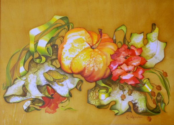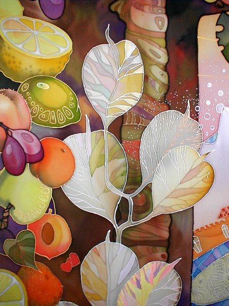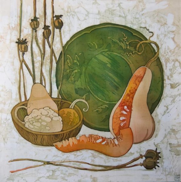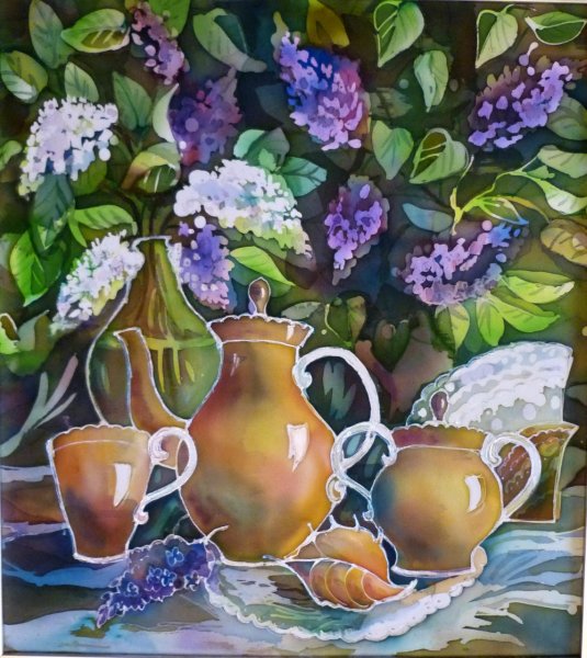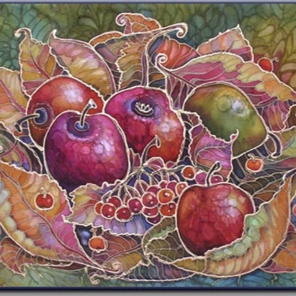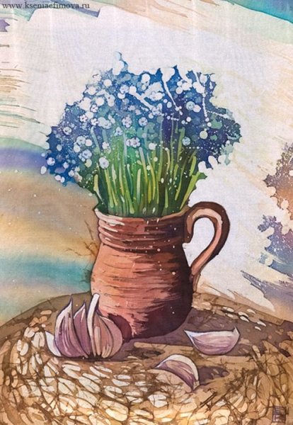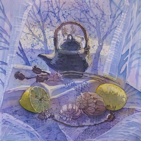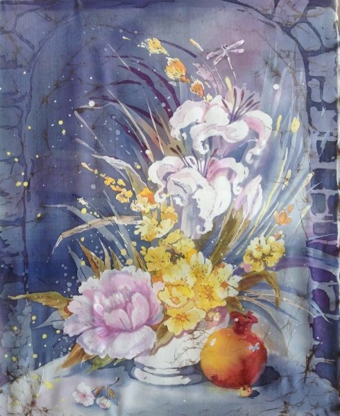 Натюрморт в технике горячего батика - это уникальное художественное произведение, которое привлекает внимание своей яркостью и оригинальностью. Горячий батик - это особый способ рисования на текстиле, при котором расплавленный воск наносится на ткань и создает контуры изображения. Затем ткань окрашивается различными красителями, которые не проникают через воск, сохраняя контурные линии. В результате получается впечатляющая композиция, в которой сочетаются яркие цвета, глубина и объемность изображений. Натюрморты, выполненные в технике горячего батика, привносят в интерьер особую атмосферу и стиль, добавляя его оригинальности и элегантности.