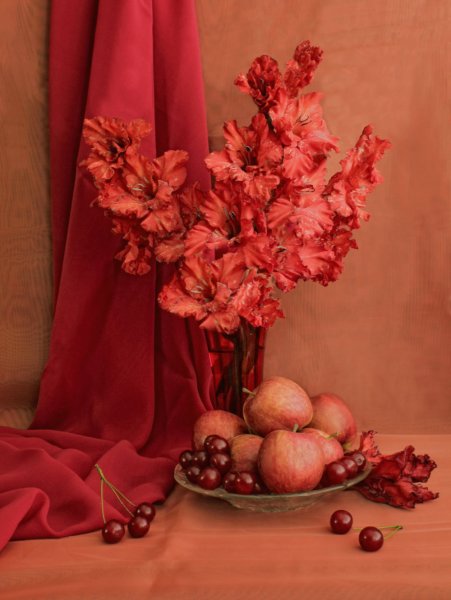 Натюрморт – это живописный жанр, в котором изображаются неживые предметы, такие как фрукты, цветы, посуда и другие элементы. В данном случае, натюрморт выполнен в одной цветовой гамме, что придает ему особую гармонию и эстетическую привлекательность. Все элементы композиции тщательно подобраны и расположены таким образом, чтобы создать ощущение баланса и согласованности. Цветовая палитра может быть монохромной или состоять из нескольких оттенков одного цвета, что создает единое целое и придает картине особый характер. Натюрморт в одной цветовой гамме является прекрасным способом передать настроение и эмоции, а также добавить особый шарм и стильность в интерьер.