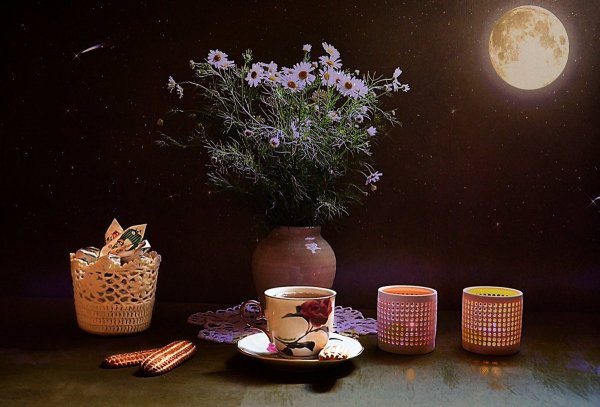 Ночной натюрморт - это уникальный вид художественного изображения, который захватывает великолепие и мистическую атмосферу ночного времени. Это живописная композиция, созданная с использованием различных предметов и элементов, которые прекрасно сочетаются под мягким светом луны или искусственного освещения. Наблюдая за таким произведением искусства, можно почувствовать таинственность и загадочность ночного времени, его спокойствие и интимность. Ночной натюрморт является воплощением красоты и эстетики, передавая все эмоции, которые пробуждаются в нас, когда мы оказываемся в окружении природы и объектов, погруженных в темноту. Он отражает глубокое взаимодействие между светом и тенью, создавая драматичность и впечатляющую атмосферу. Ночной натюрморт - это искусство, которое удивляет и вдохновляет своей уникальной красотой и эмоциональной силой.
