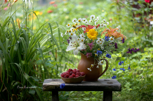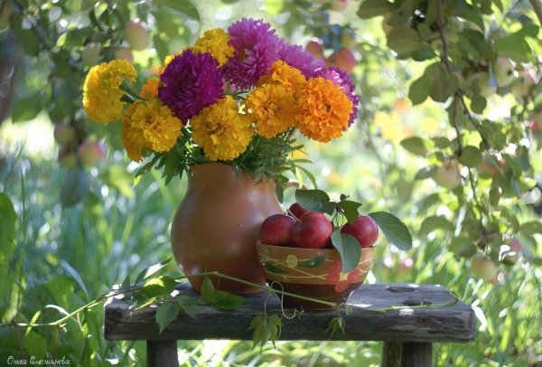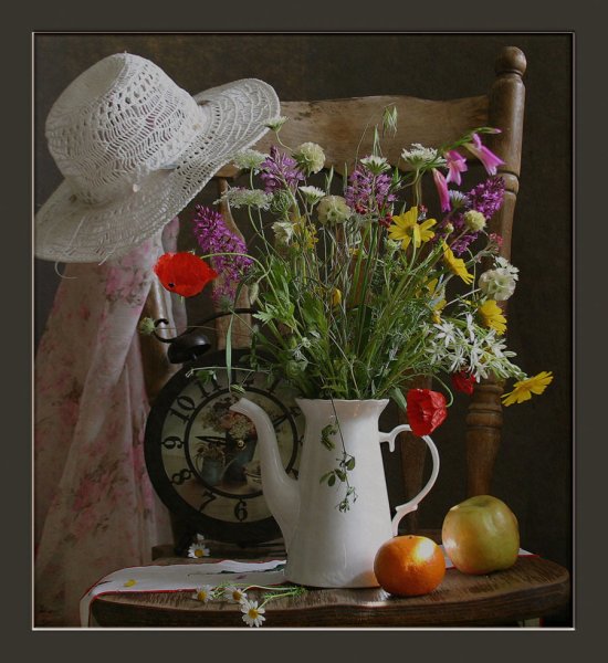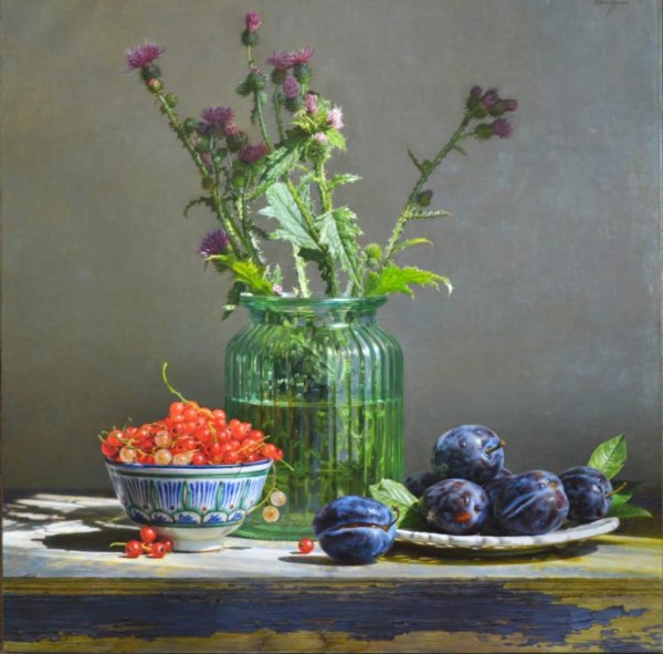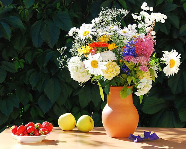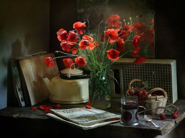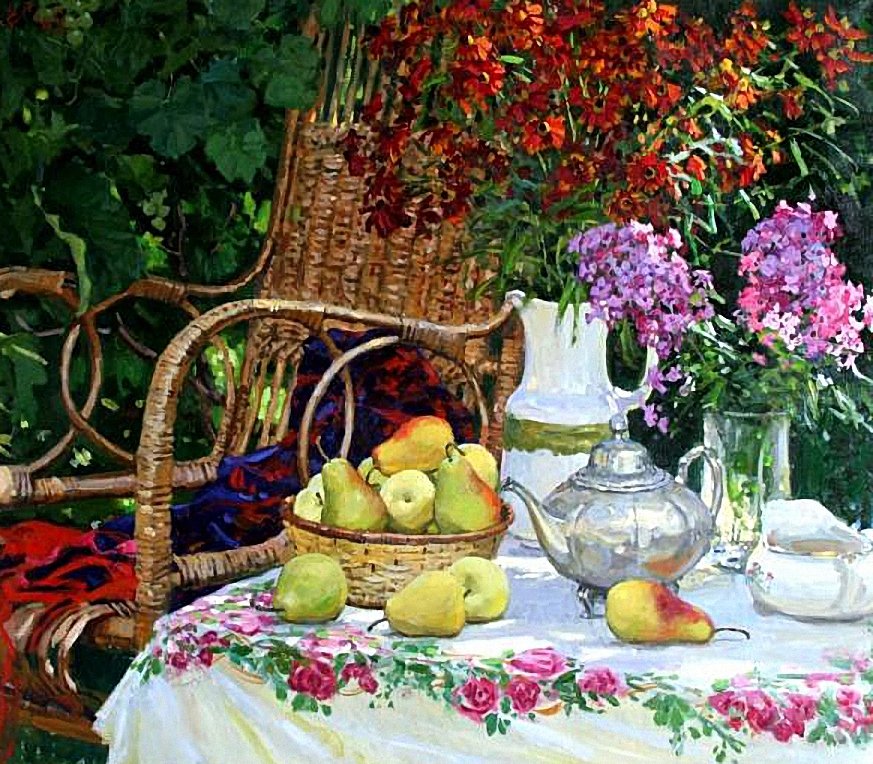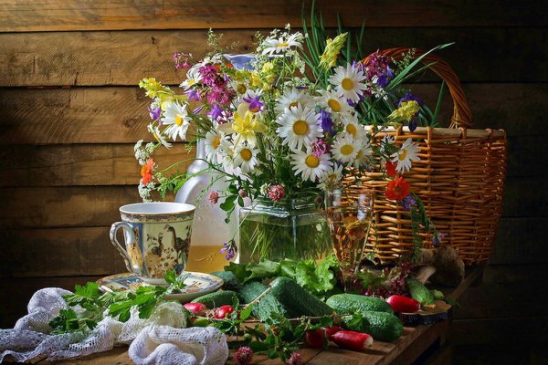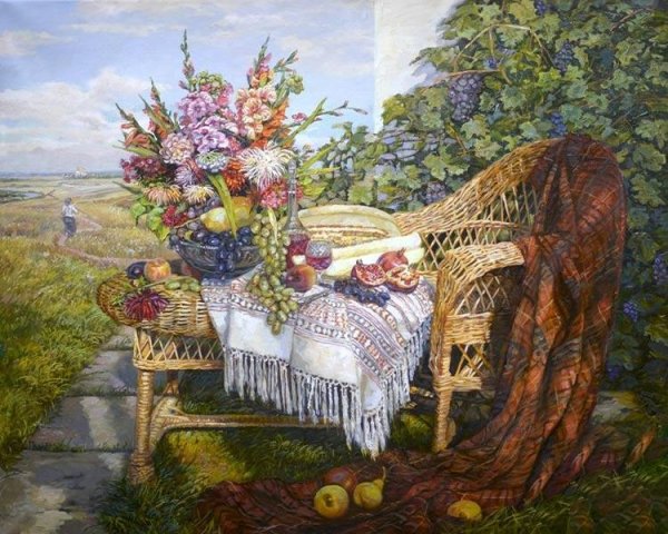 Дачный натюрморт - это удивительное и красивое произведение искусства, которое захватывает весь очаровательный образ природы. Этот натюрморт олицетворяет душу дачного участка, воплощая все его прелести и эстетику. В нем можно увидеть яркие и сочные цветы, расположенные в вазе или корзине, свежие овощи и фрукты, выращенные с большой заботой и любовью, а также различные предметы, характерные для дачной тематики, например, садовые инструменты, птицы или бабочки. Дачный натюрморт создает атмосферу умиротворения, наполненную ароматами и красками летнего сезона, и позволяет насладиться моментом отдыха и гармонии с природой. Это яркий акцент в интерьере, который поднимает настроение и привносит в дом частичку летнего рая.