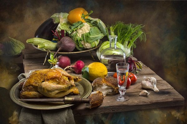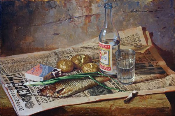 Водочный натюрморт - это уникальное и оригинальное произведение искусства, которое представляет собой композицию из различных элементов, связанных с темой водки. В этом натюрморте можно увидеть бутылки и стопки с водкой, лимоны или другие фрукты, используемые в качестве закуски, а также другие декоративные элементы, создающие атмосферу стола для употребления водки. Это произведение искусства может быть выполнено в различных стилях и техниках, от классического реализма до современной абстракции, и является прекрасным способом выразить любовь и интерес к русской культуре и национальному напитку. Водочный натюрморт может стать ярким акцентом в интерьере, как в домашней обстановке, так и в ресторане или баре, а также станет интересным подарком для коллекционеров и ценителей искусства.