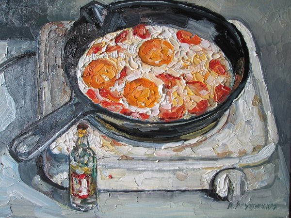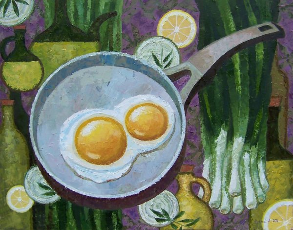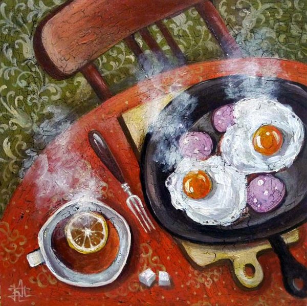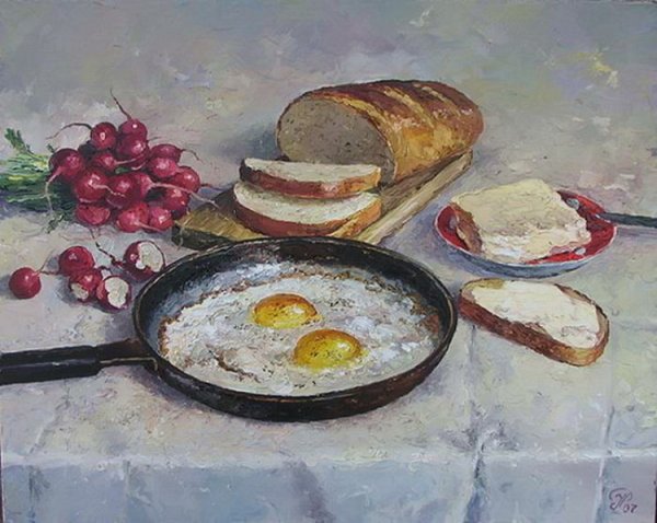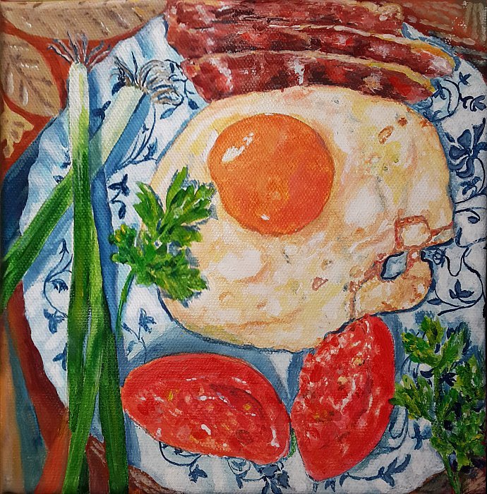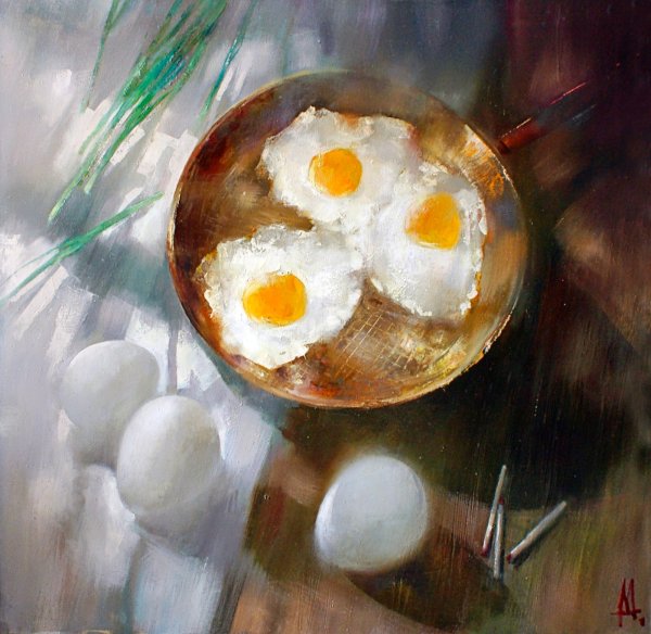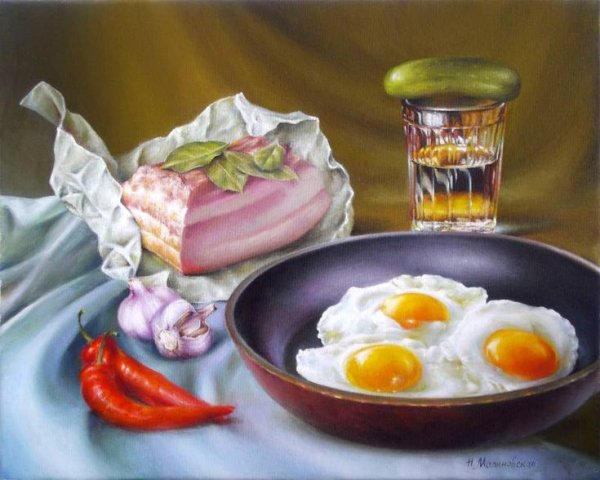 Наши глаза не могут устоять перед этим натюрмортом, который просто завораживает своей красотой и аппетитным видом. Желтые яичницы, обжаренные до совершенства, лежат на белоснежной тарелке, окруженные свежими овощами и зеленью. Их сочность и нежность просто притягивают взгляд, а аромат, который исходит от этого блюда, заставляет наши желудки урчать от голода. Этот натюрморт яичница является идеальным завтраком или перекусом, который подарит нам энергию и хорошее настроение на весь день.
