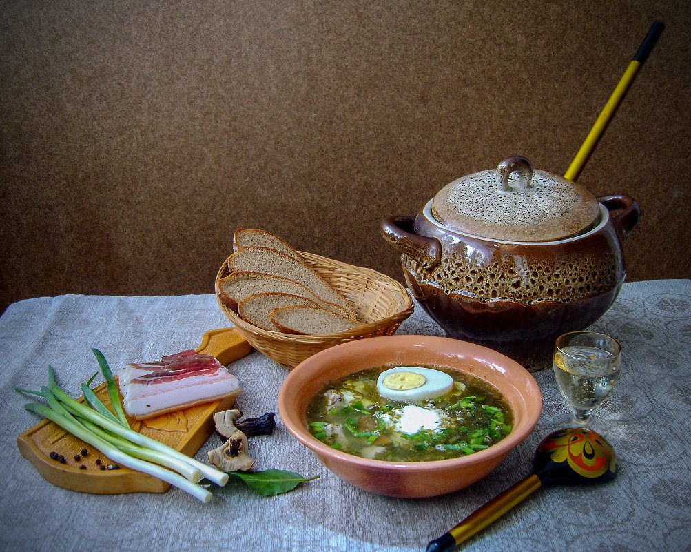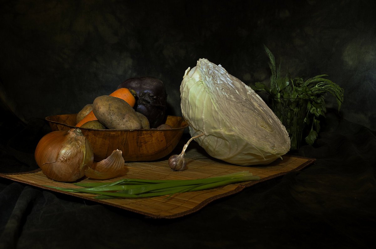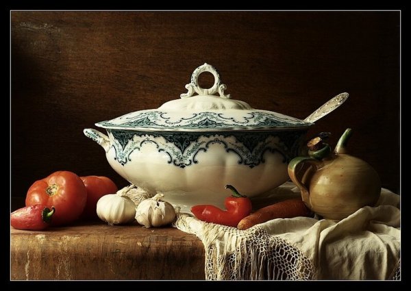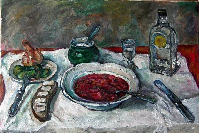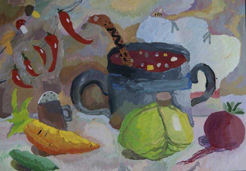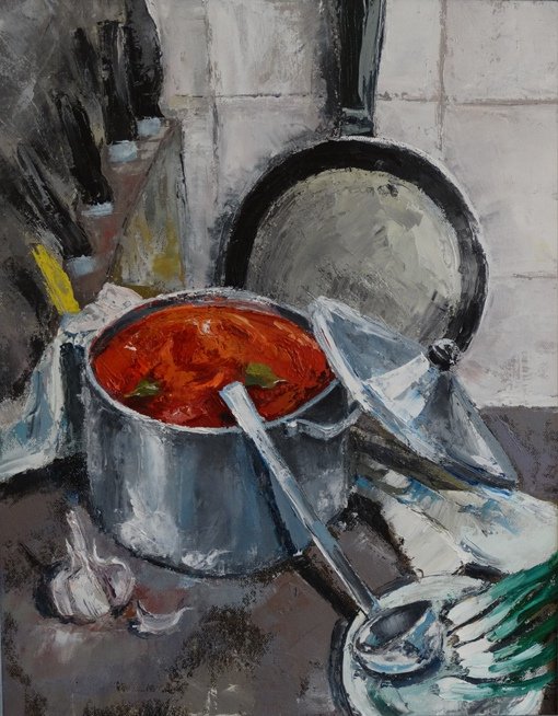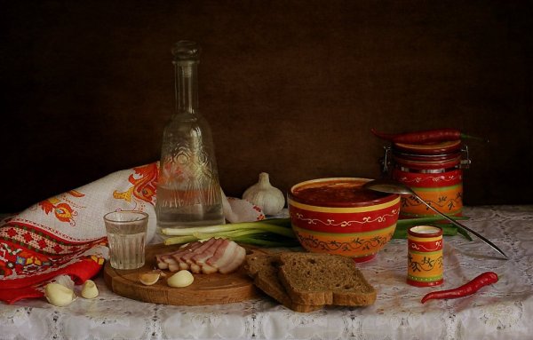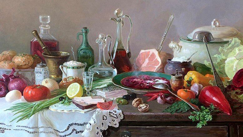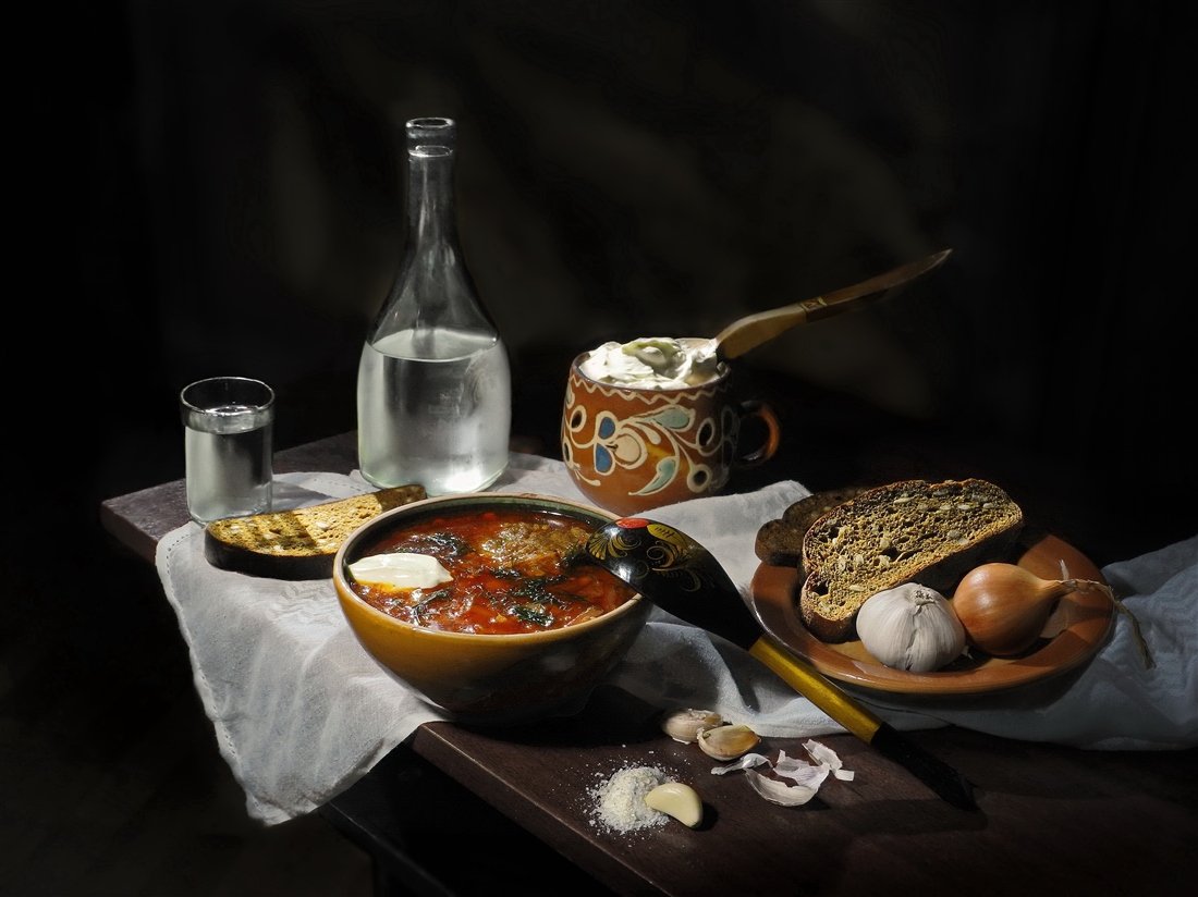 Натюрморт "борщ" - это живописное изображение классического украинского блюда, состоящего из свеклы, мяса, картофеля, лука и других овощей. В этом натюрморте можно увидеть яркую палитру цветов: красный от свеклы, зеленый от укропа и зелени, белый от сметаны. Каждая деталь находится на своем месте, создавая гармоничную композицию. Это изображение воплощает традиции и наследие украинской кухни, передавая ее аутентичность и вкус. Натюрморт "борщ" может быть отличным украшением для кухни или ресторана, а также вдохновить на приготовление этого вкусного и питательного блюда.