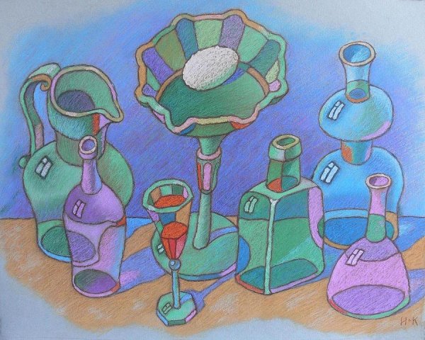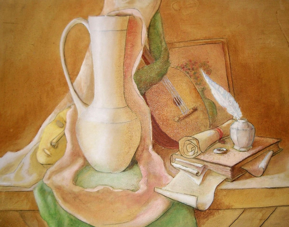 Натюрморт - это жанр изобразительного искусства, в котором художник создает композицию, изображая различные предметы на столе или другой поверхности. Выдуманный натюрморт - это особый вид этого жанра, где художник использует свою фантазию и творческий подход для создания уникальной и оригинальной композиции. В таком натюрморте можно увидеть необычные сочетания предметов, несуществующие растения или фрукты, абстрактные формы и яркие цвета. Это позволяет художнику выразить свои идеи, эмоции и фантазии через образы, созданные на холсте. Выдуманный натюрморт может быть как реалистичным, так и абстрактным, отражая индивидуальный стиль и художественное видение автора. Такой натюрморт привлекает внимание зрителя своей оригинальностью и возможностью интерпретации различных символов и идей, которые воплощены в его формах и цветах.