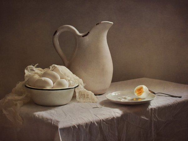 Натюрморт с яйцами - это произведение искусства, которое воплощает красоту и хрупкость природы. В этом натюрморте яйца становятся центральным объектом, символизируя жизнь, плодородие и начало нового. Каждое яйцо отображается с уникальными текстурой и формой, вызывая интерес и восхищение у зрителя. Цветовая гамма натюрморта мягкая и приглушенная, что создает атмосферу спокойствия и гармонии. Композиция натюрморта обычно проста и сбалансирована, акцентируя внимание на самом объекте. Натюрморт с яйцами может быть использован в декорации дома или офиса, добавляя нотку элегантности и изысканности в интерьер. Это искусство, которое способно вызвать у человека размышления о жизни, ее краткости и уникальности.