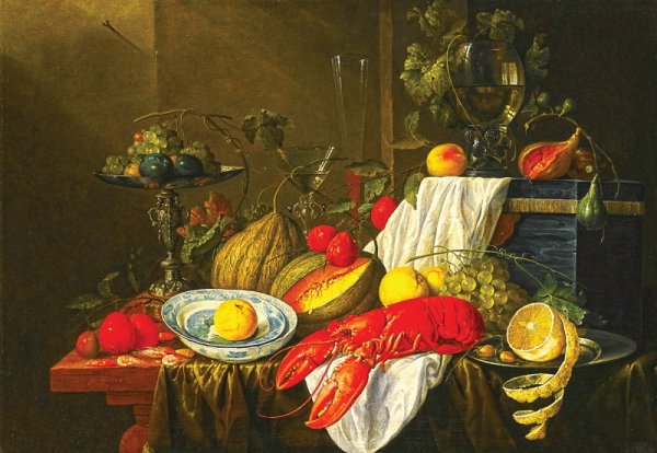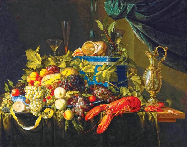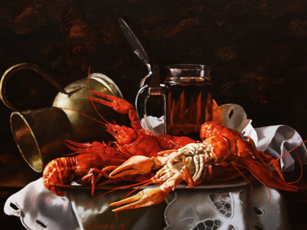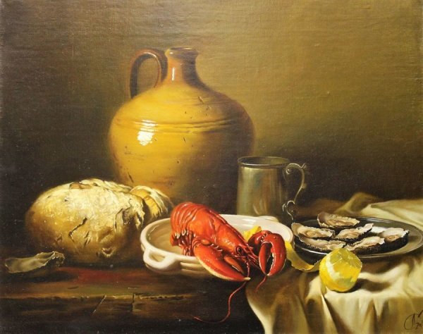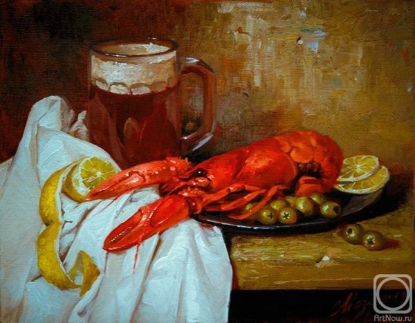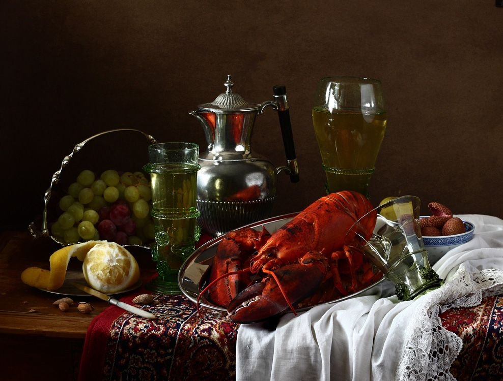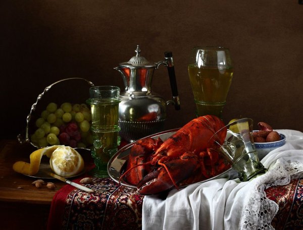 Натюрморт с лангустом - это произведение искусства, которое привлекает внимание своей изысканностью и уникальностью. В этой композиции центральное место занимает живописное изображение лангуста, которое передает его прекрасную форму и текстуру. Яркий красный оттенок панциря создает контраст с нежными оттенками фона, придавая работе глубину и реалистичность. Разнообразие использованных предметов, таких как столовые приборы, фрукты или цветы, добавляют дополнительные акценты и создают атмосферу изящества и изобилия. Натюрморт с лангустом позволяет насладиться красотой морепродукта и ощутить вкус изысканного стола прямо на холсте.